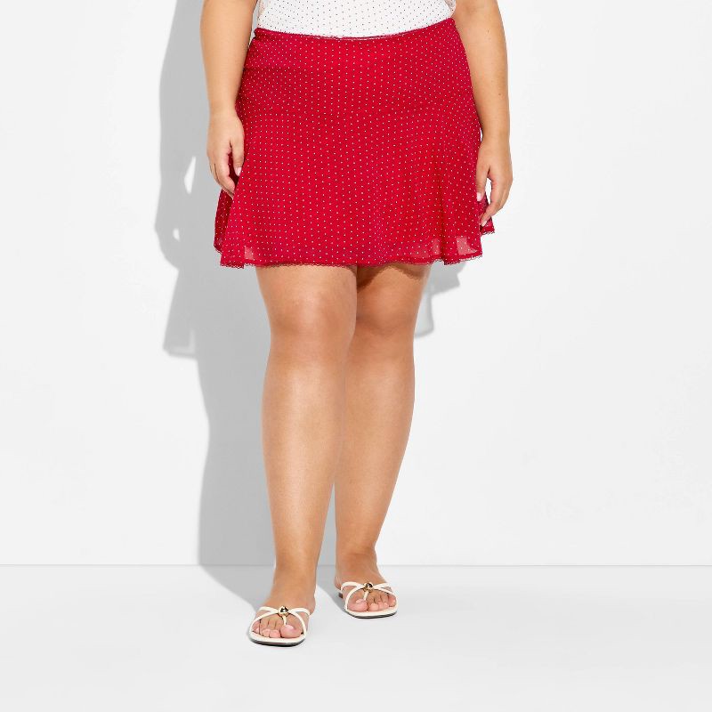 Women's Drop Waist Mini Skirt - Wild Fable™ Red Polka Dots XXL