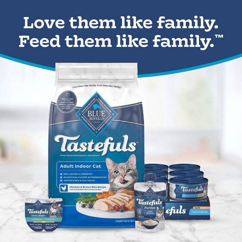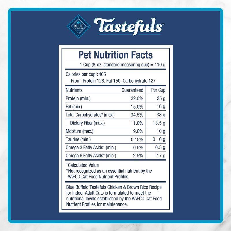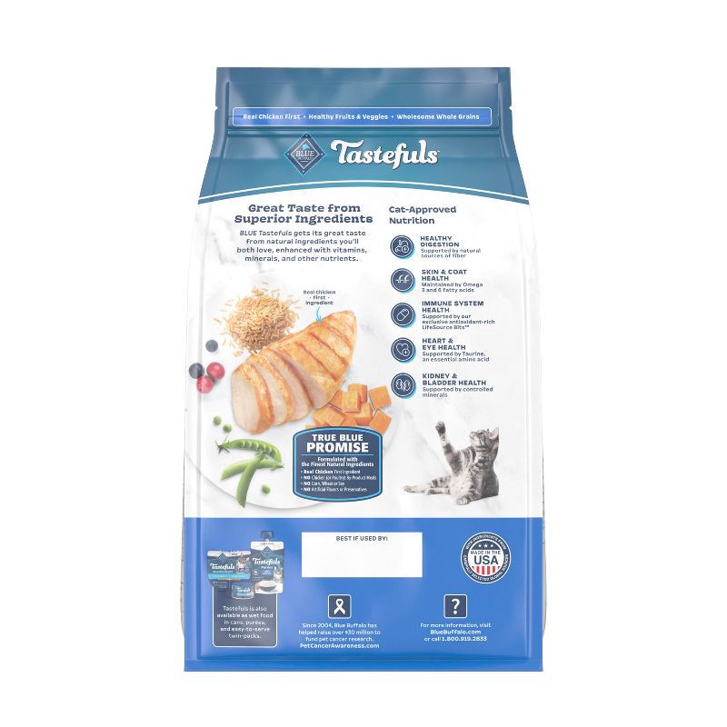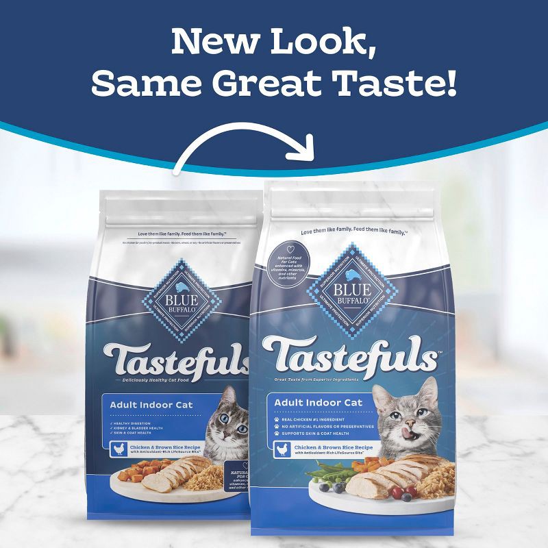 - Contains: One (1) 5-lb. bag of BLUE Tastefuls Indoor Adult Dry Cat Food, Chicken & Brown Rice Recipe