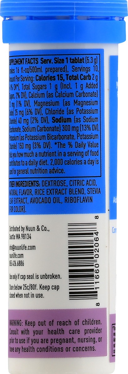 Effervescent Electrolyte Supplement. Natural flavor. 1 gram sugar. 15 calories. Vegan. Gluten free. Non GMO Project verified. nongmoproject.org. For Exercise: Breaking a sweat? Packed with complete el…