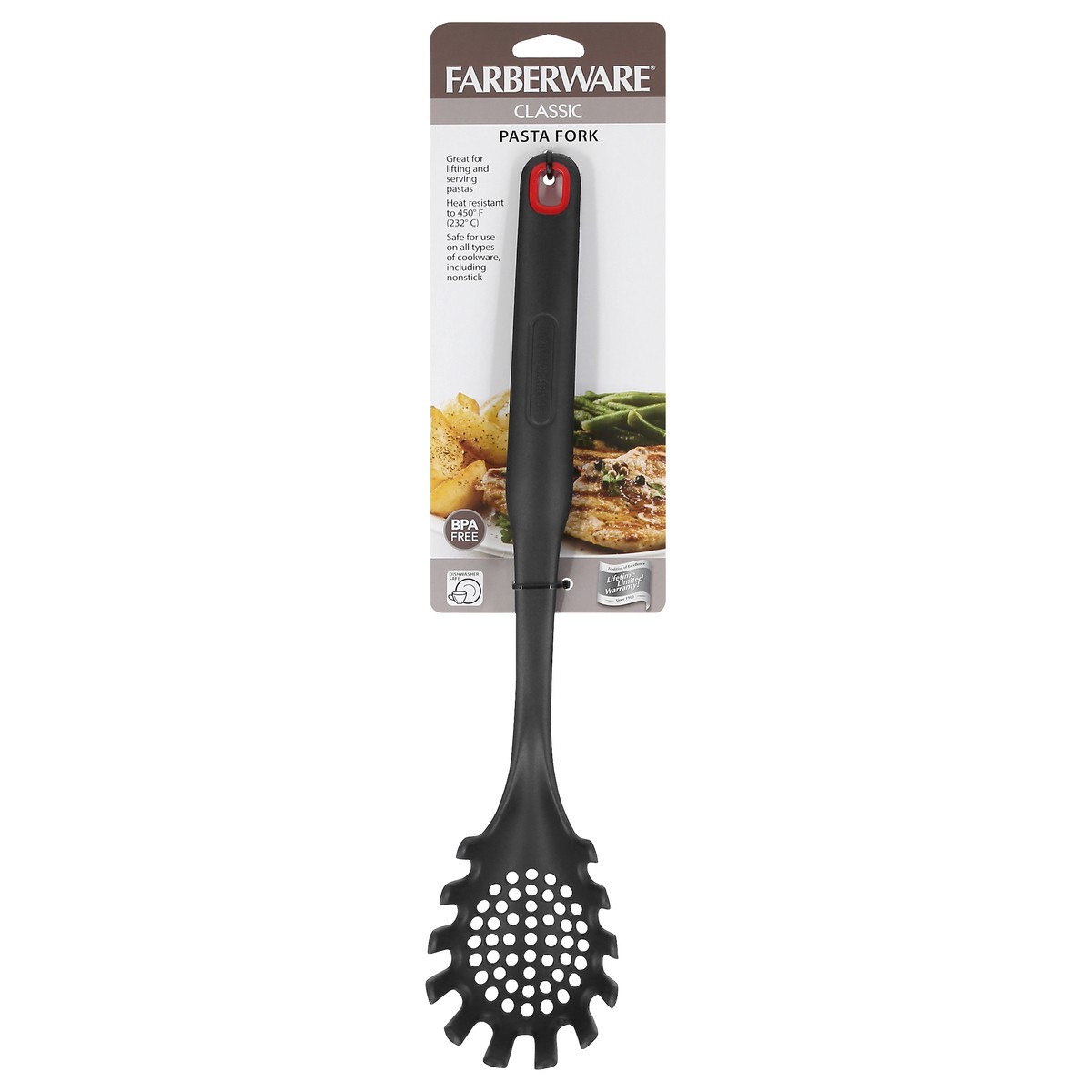 Great for lifting and serving pastas. Heat resistant to 450 degrees F (230 degrees C). Safe for use on all types of cookware, including nonstick. Dishwasher safe. Tradition of excellence. Since 1900. …