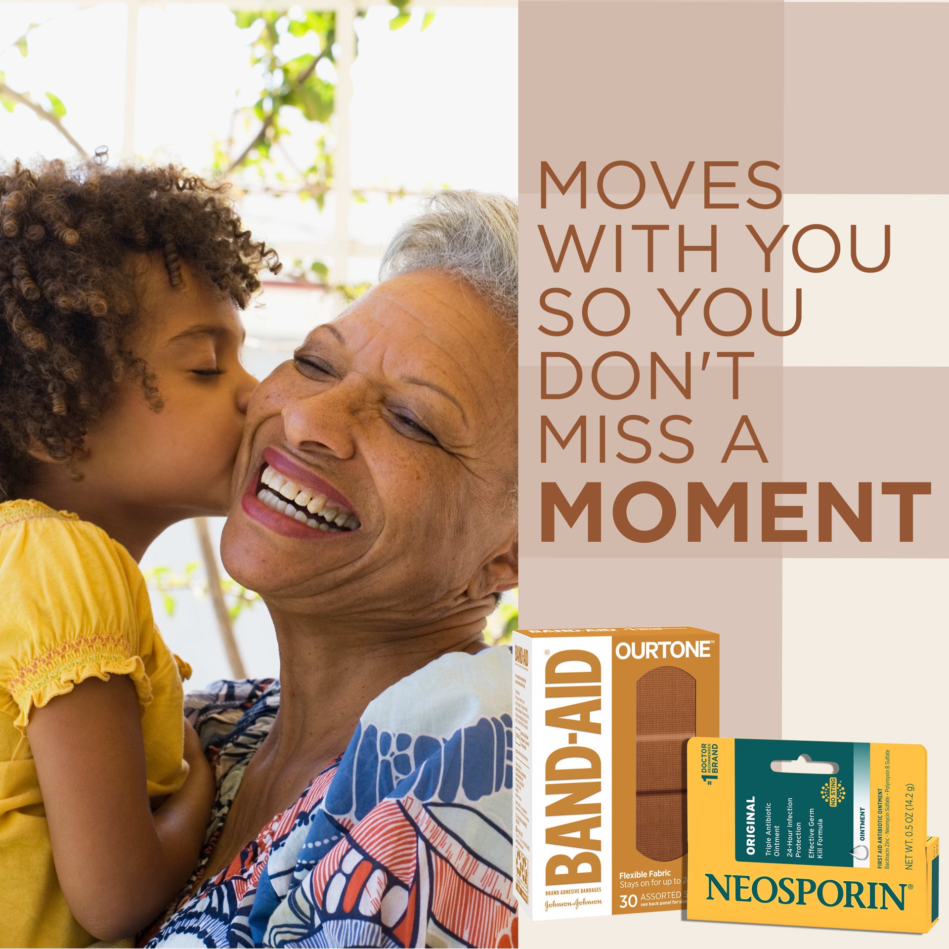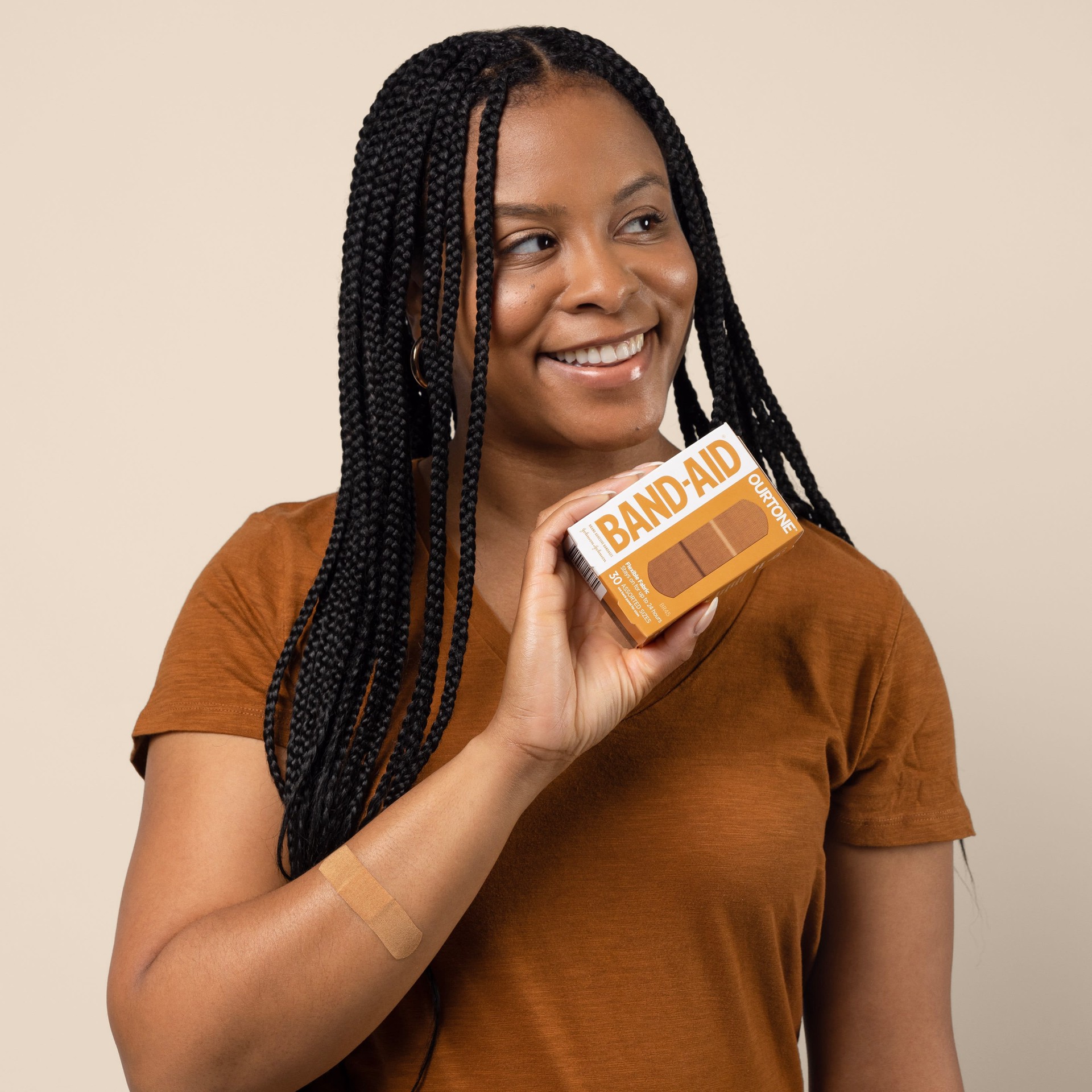 Band-Aid Brand Ourtone Flexible Fabric Adhesive Bandages in assorted sizes provide a wound care option in shades for Brown skin tones. Designed to blend in with your skin tone, these fabric bandages i…