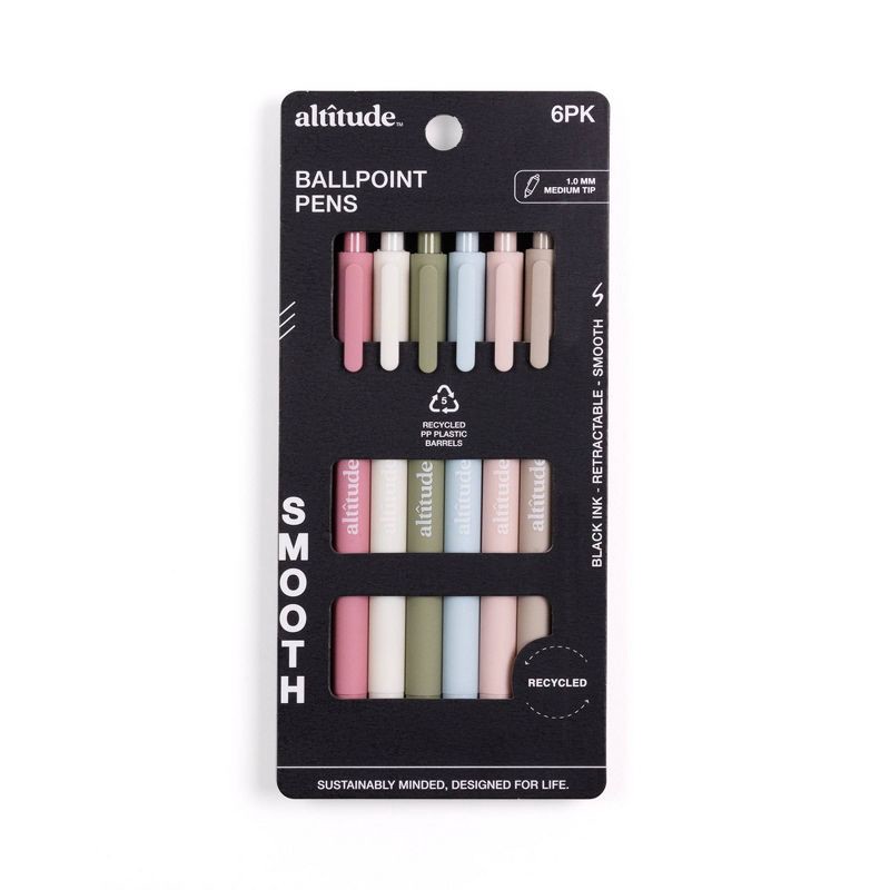 Write smoothly with the Altitude Supplies 6pk Ballpoint Pens, designed for reliable everyday use at school, work, or home. These retractable ballpoint pens feature a 1.0mm medium point that delivers c…
