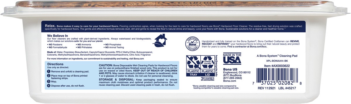 Bona Disposable Wet Cleaning Pads for Hardwood Floors with Lavender 12 Ct