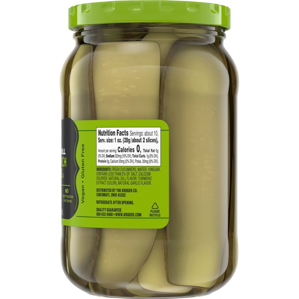 Ingredients: Fresh Cucumbers, Water, Vinegar, Contains Less Than 2% Of: Salt, Calcium Chloride, Natural Dill Flavor, Turmeric Extract (Color), Natural Garlic Flavor.