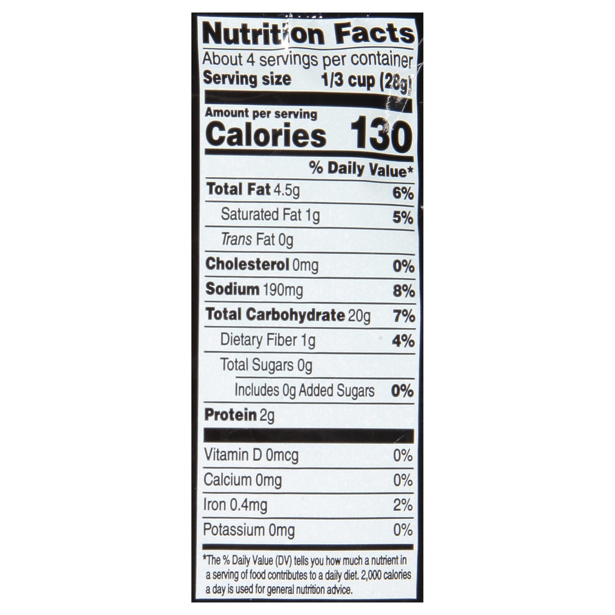 - Crunchy snack with 130 calories and zero sugar per 2.5 ounce serving