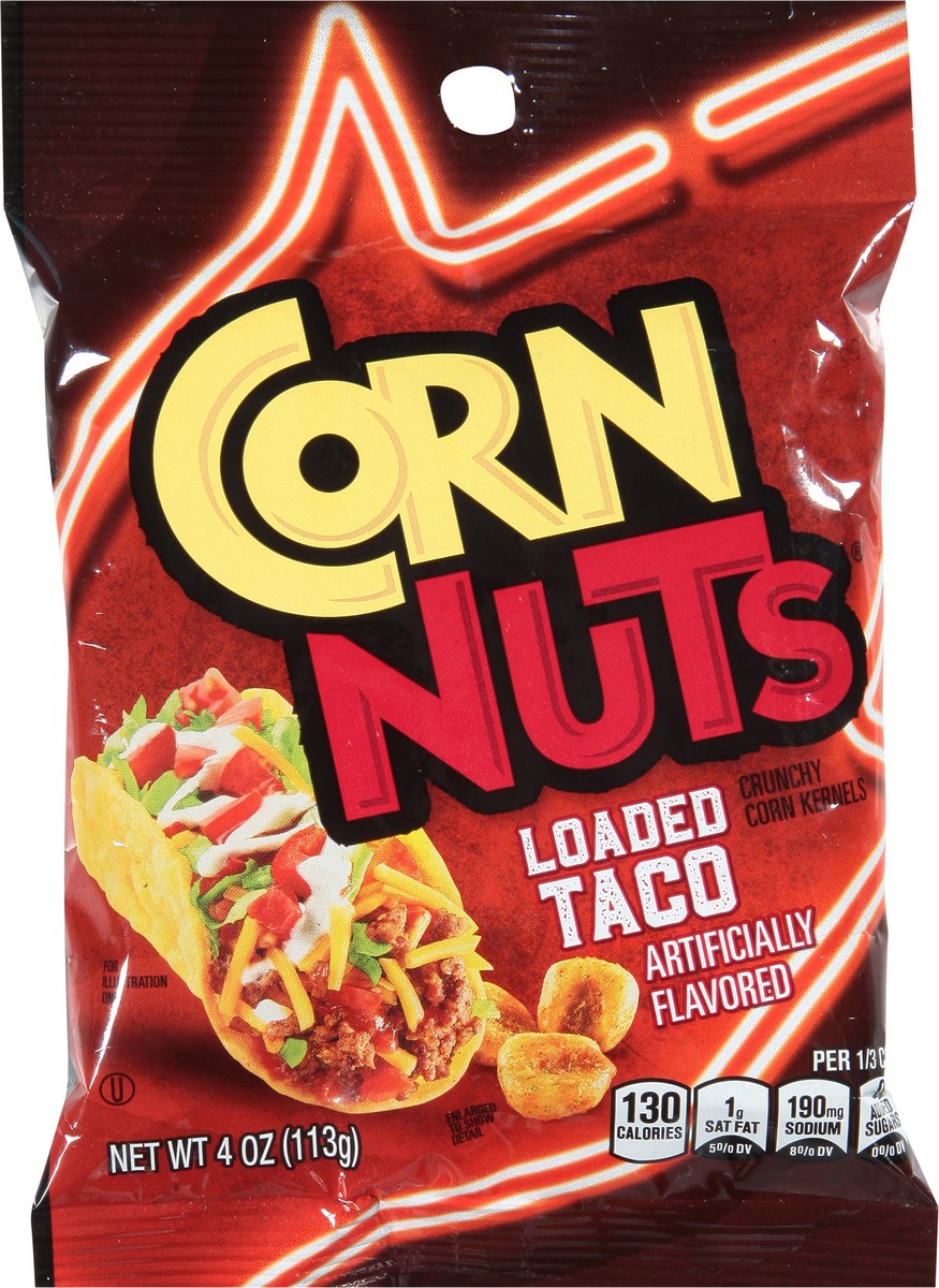 - CORN NUTS Loaded Taco Flavored corn kernels brings a bold take to a familiar flavor with notes of garlic