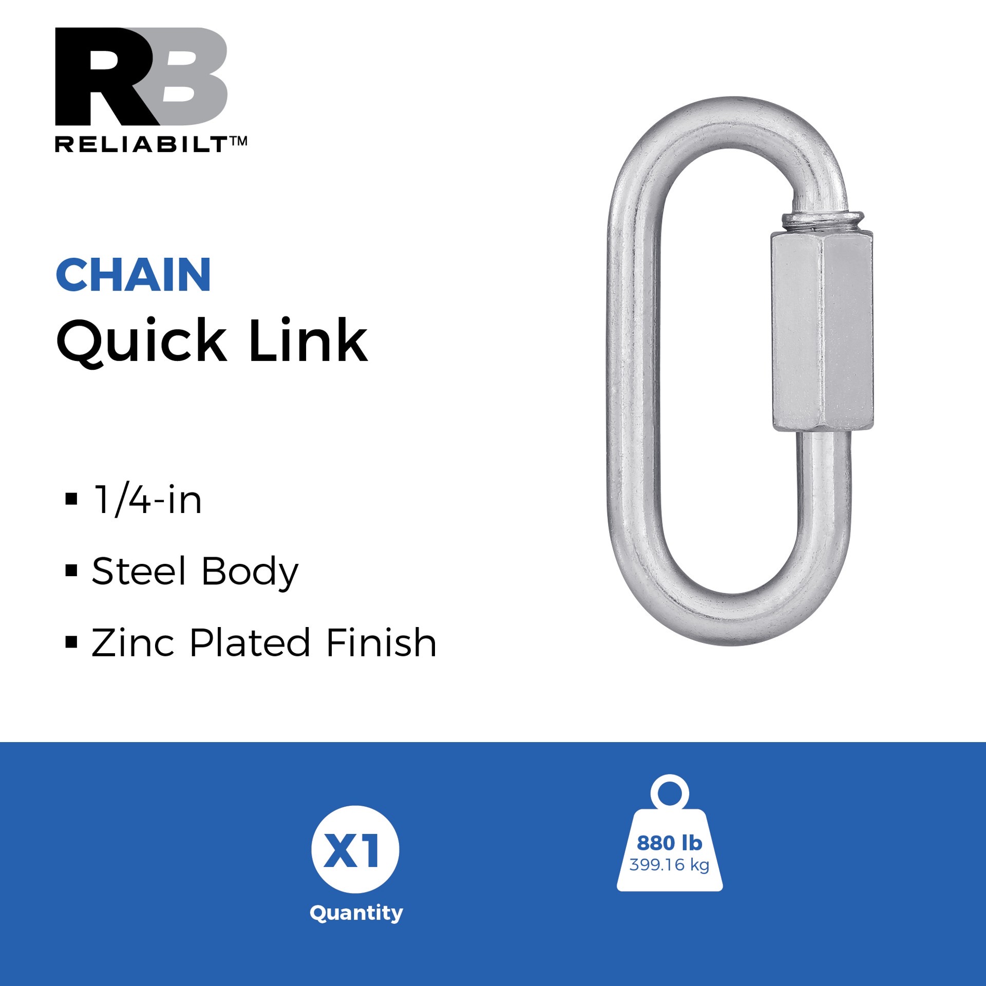 1/4-in Quick Link is designed for fast, easy connections between two lengths of chain or for attaching accessories to chain. Steel body construction provides maximum durability. Installs quickly using…