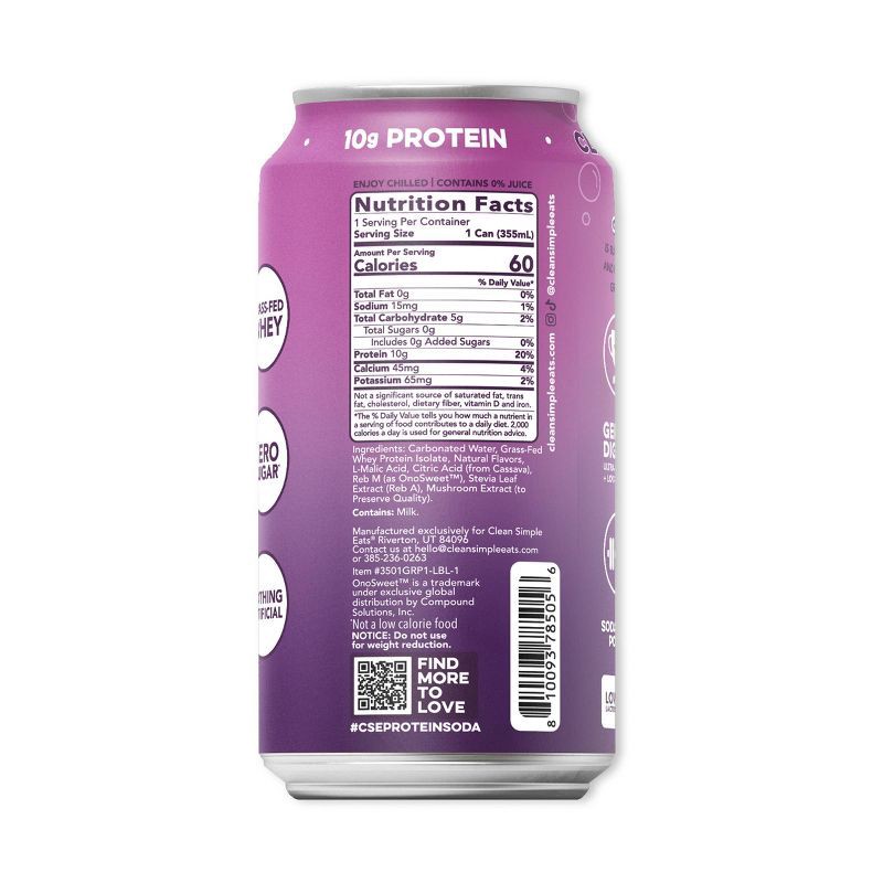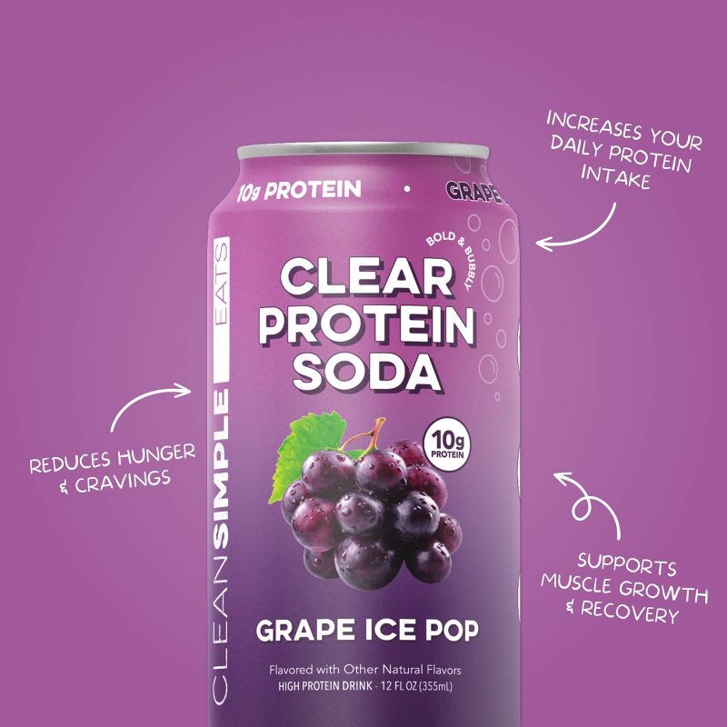 Clean Simple Eats Clear 10g Protein Soda Grape Ice Pop - 12 fl oz Can