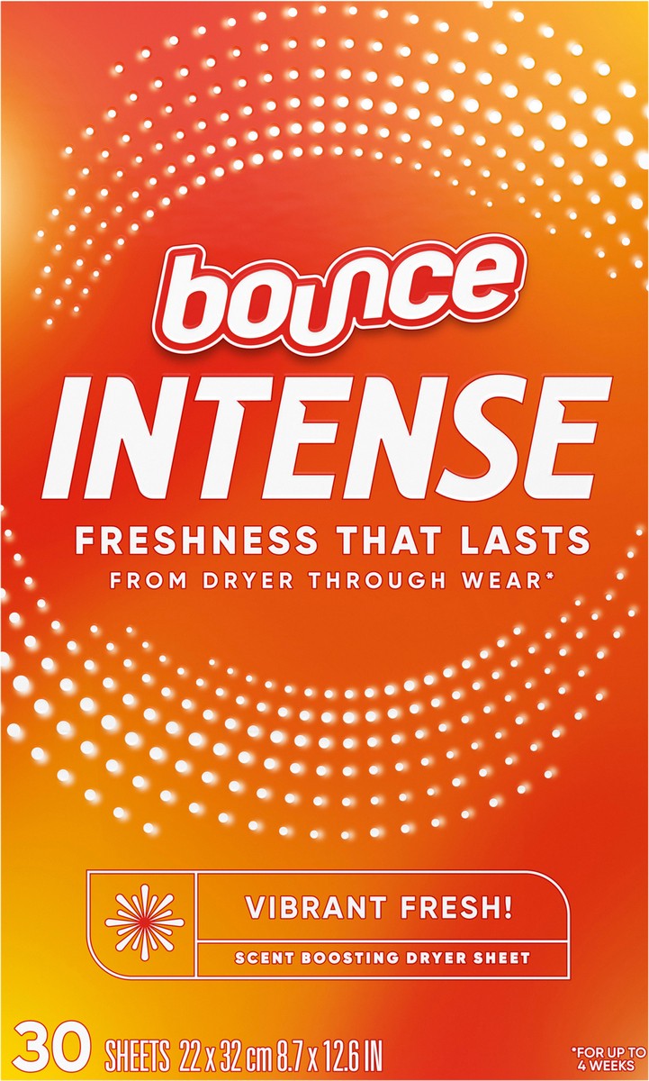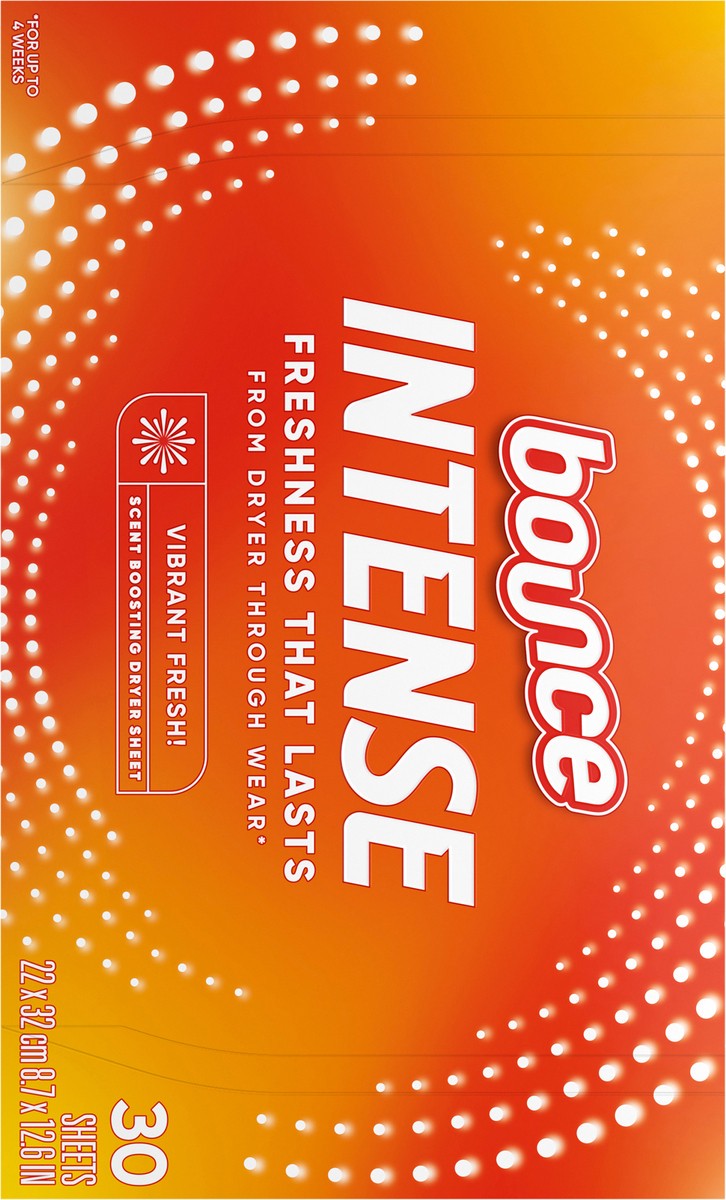 Bounce Intense Dryer Sheets, Vibrant Fresh, 30 Count, Scent Boosting Dryer Sheet