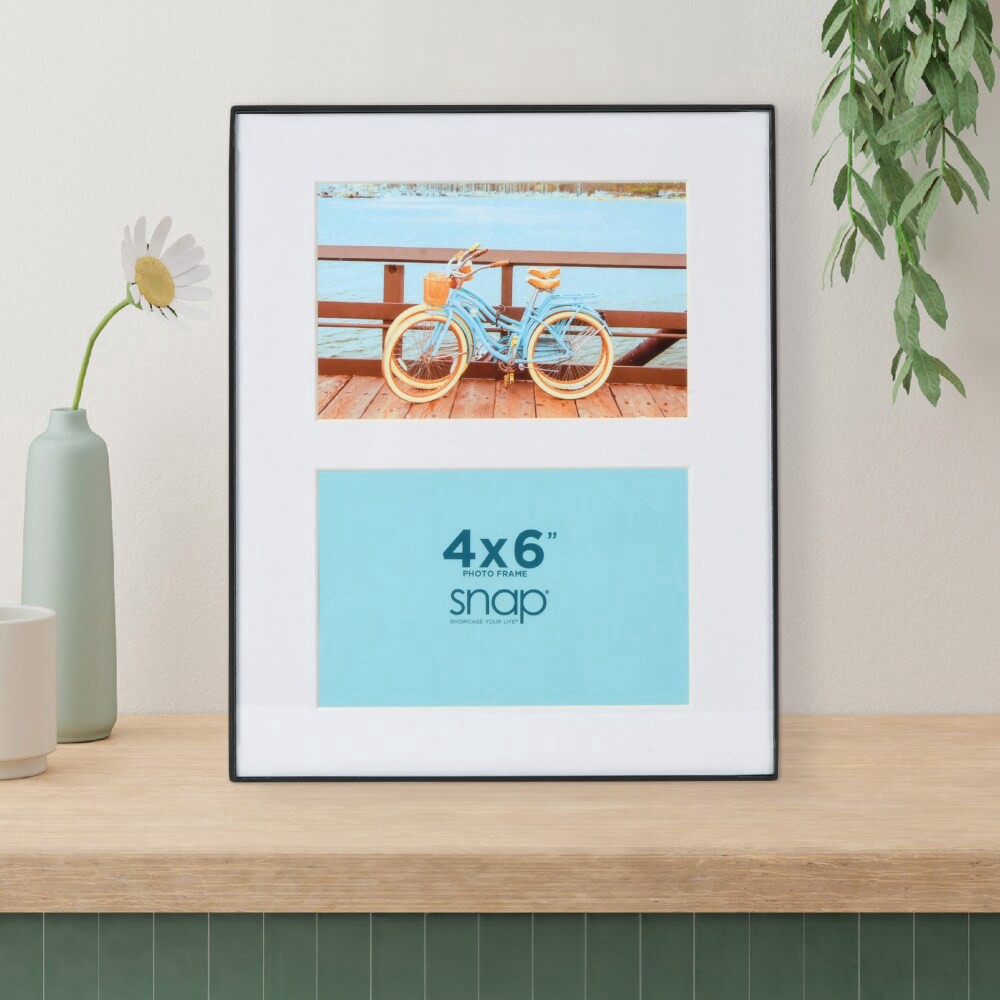 Snap 8"x10" Matted 2 Opening Front Load Photo Frame - Black