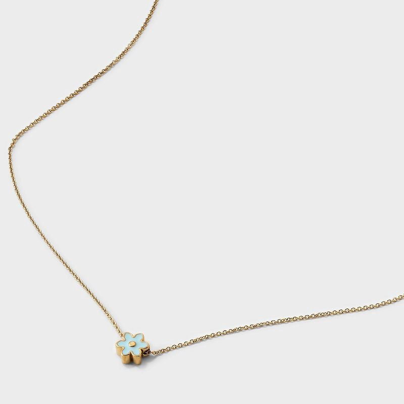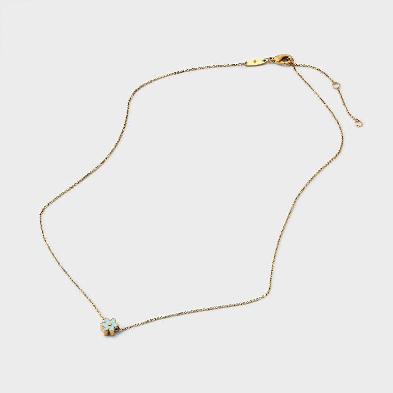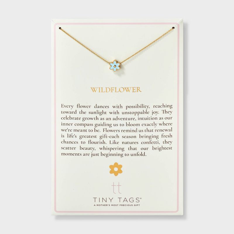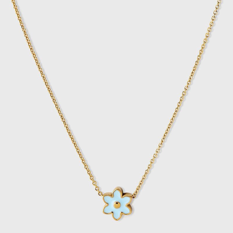 Tiny Tags 14K Gold Ion Plated Blue Enamel Flower Necklace - Gold