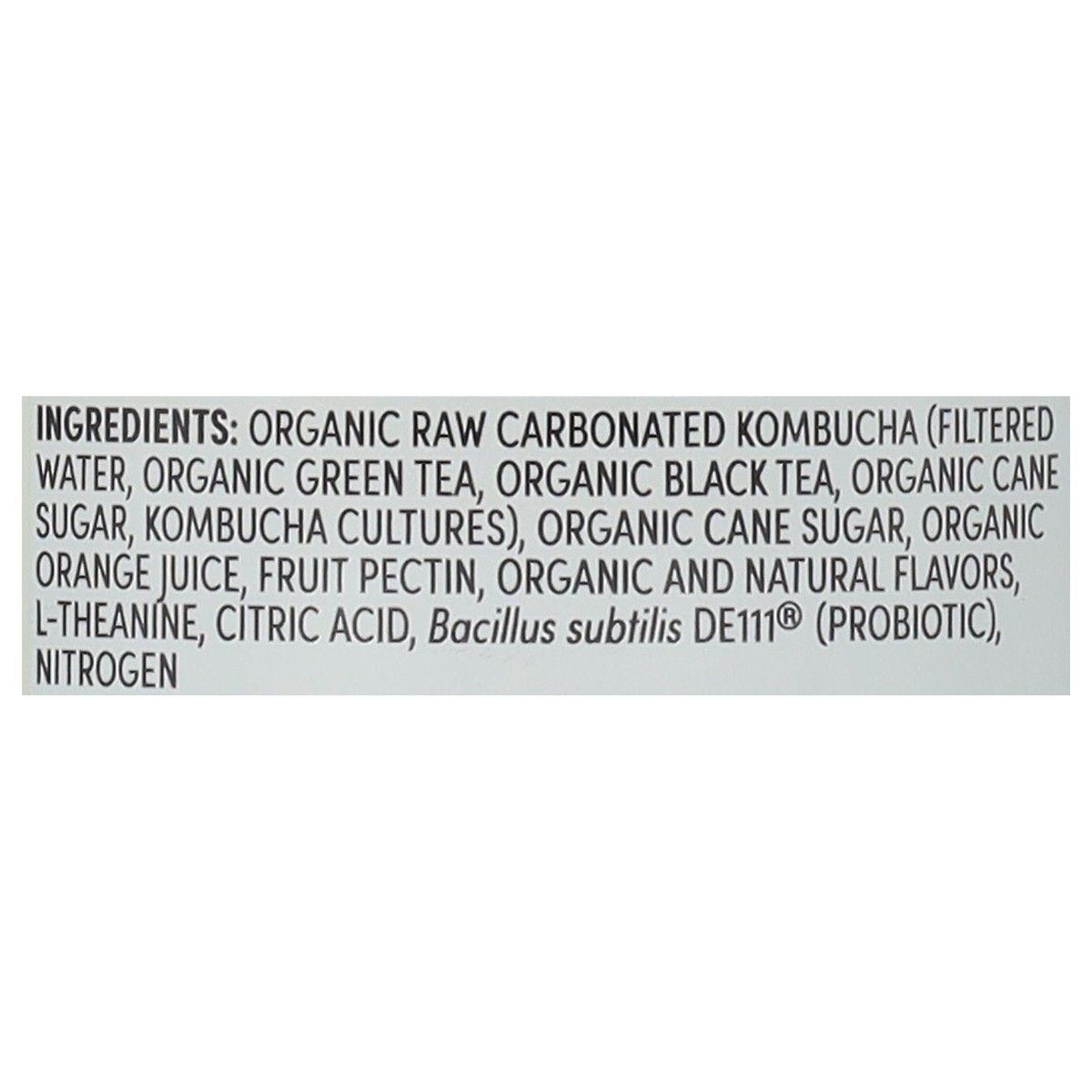 Organic Raw Carbonated Kombucha (Filtered Water, Organic Green Tea, Organic Black Tea, Organic Cane Sugar, Kombucha Cultures), Organic Cane Sugar, Organic Orange Juice, Fruit Pectin, Organic and Natur…