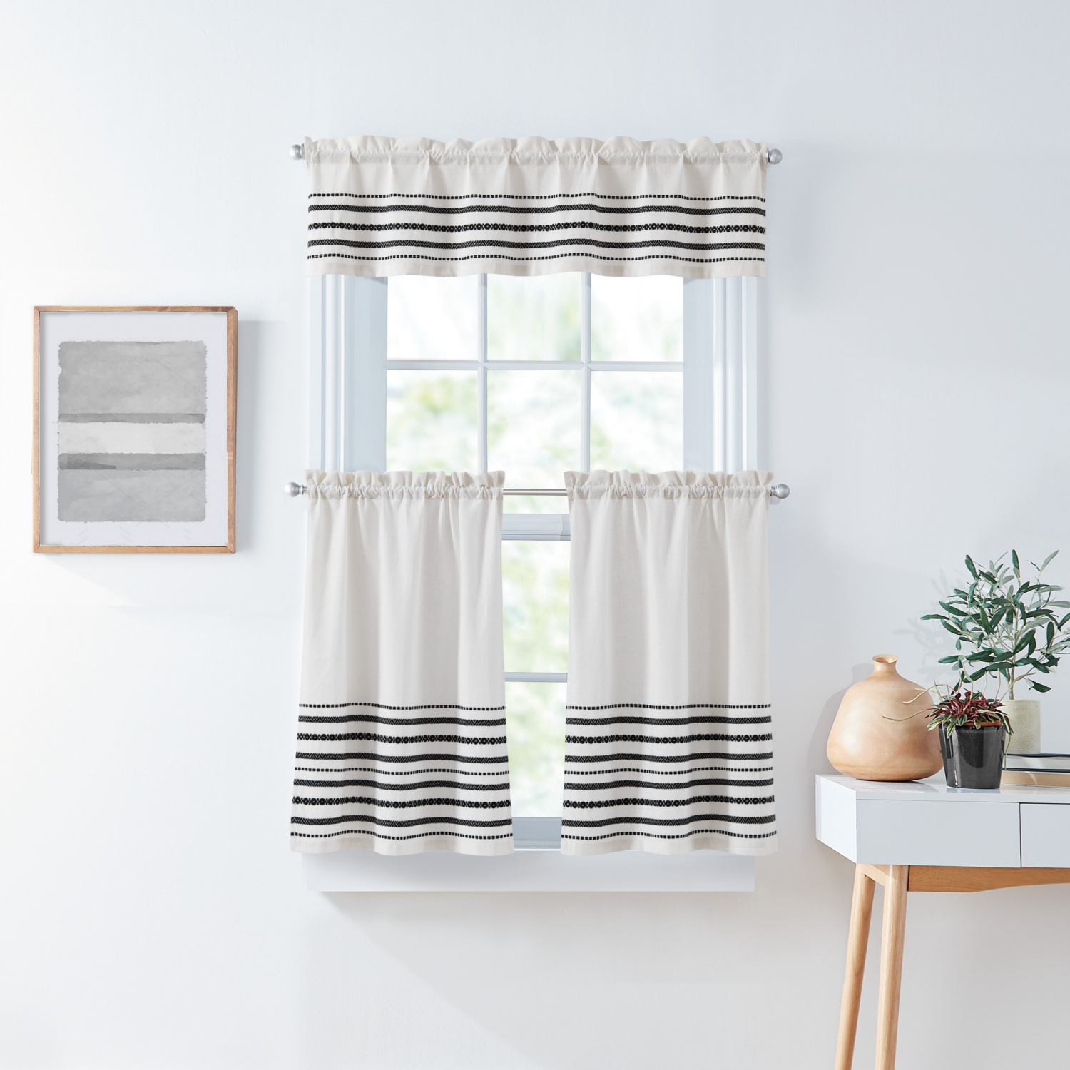 Curtainworks Global Woven Stripe 3 Piece Valance And Tier Set