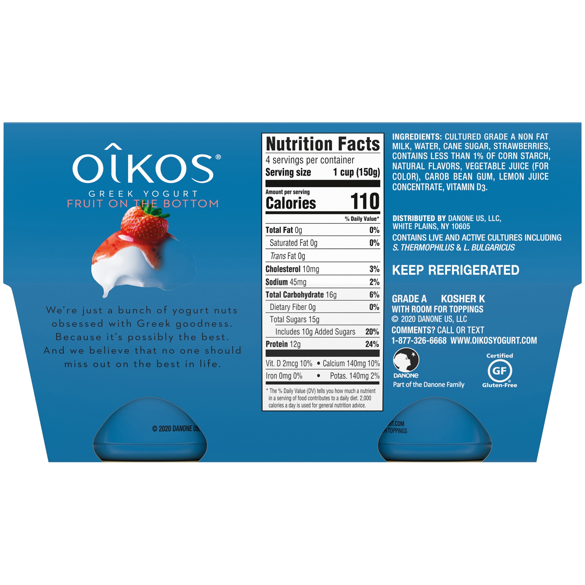 From the first spoonful to the last, Oikos Fruit on the Bottom Greek Nonfat Yogurt is simply delicious. This Greek nonfat yogurt is smooth and thick, with a layer of strawberries awaiting you at the b…