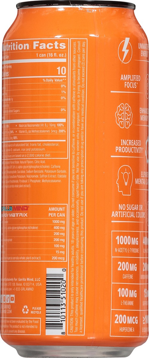 Gorilla Mind Orange Rush Energy Drink - 16 fl oz