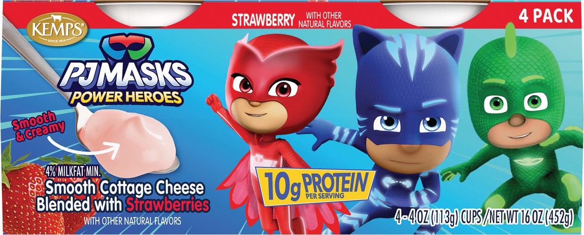 slide 1 of 5, Kemps PJ Masks Smooth Strawberry Cottage Cheese - 4Ct/4Oz Cups, 4 ct