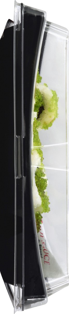 Sushi rice rolled with salmon, tuna and avocado & topped with wasabi tobikko. Raw.
