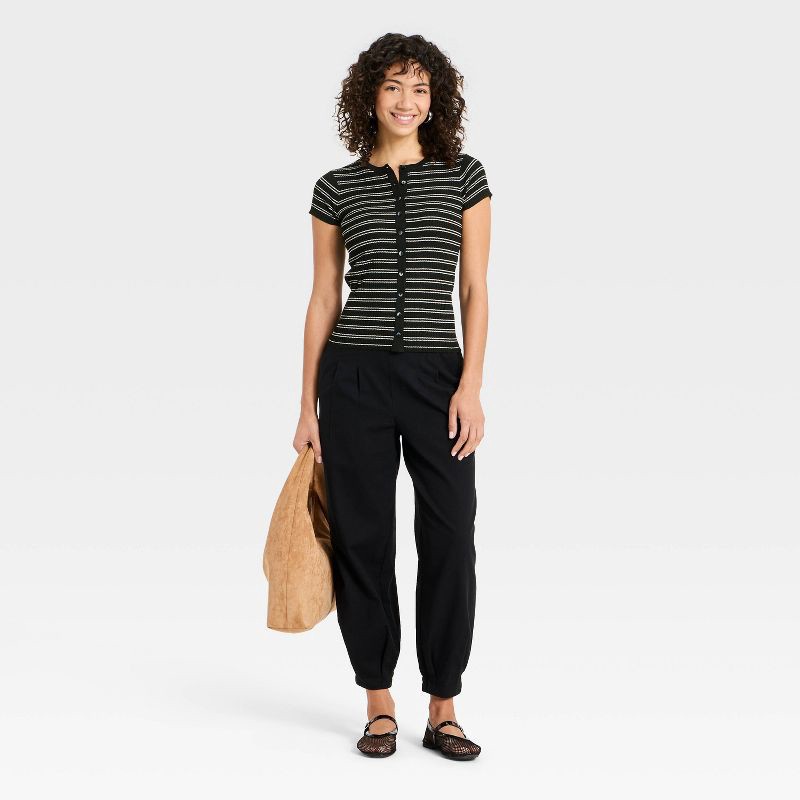 From coffee dates to evening strolls, this Short-Sleeve Button-Front Sweater from A New Day™ is a versatile addition to your casual wardrobe. Made of recycled polyester-viscose blend fabric with 2x2 r…