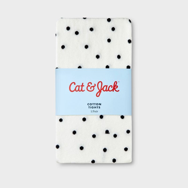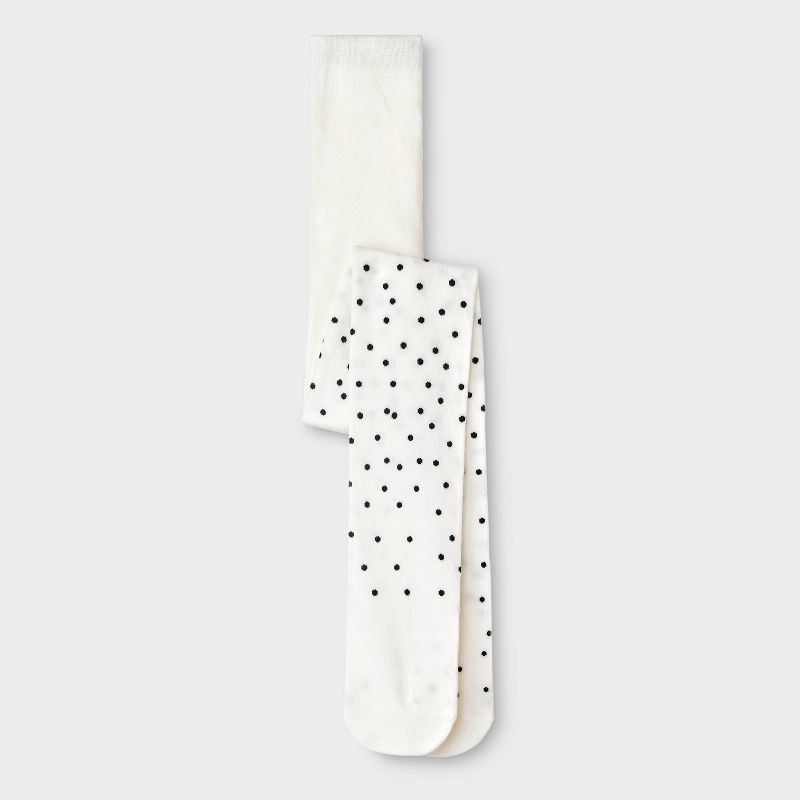 Girls' Fashion Cotton 'Black Dot' Sweater Tights - Cat & Jack™ Off-White S