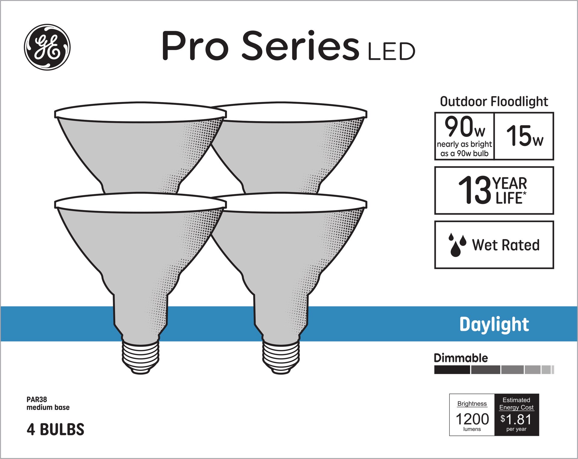 GE Daylight 90 -Watt EQ PAR38 Daylight Medium screw base E26 Dimmable LED Spot Flood Light Bulb 4 -Pack