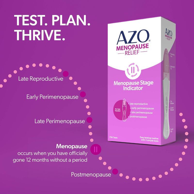 - TRUSTED HEALTH SUPPORT: Count on AZO® Products for reliable feminine health solutions. Our at home test provides the clarity you need to navigate the menopause transition with confidence.