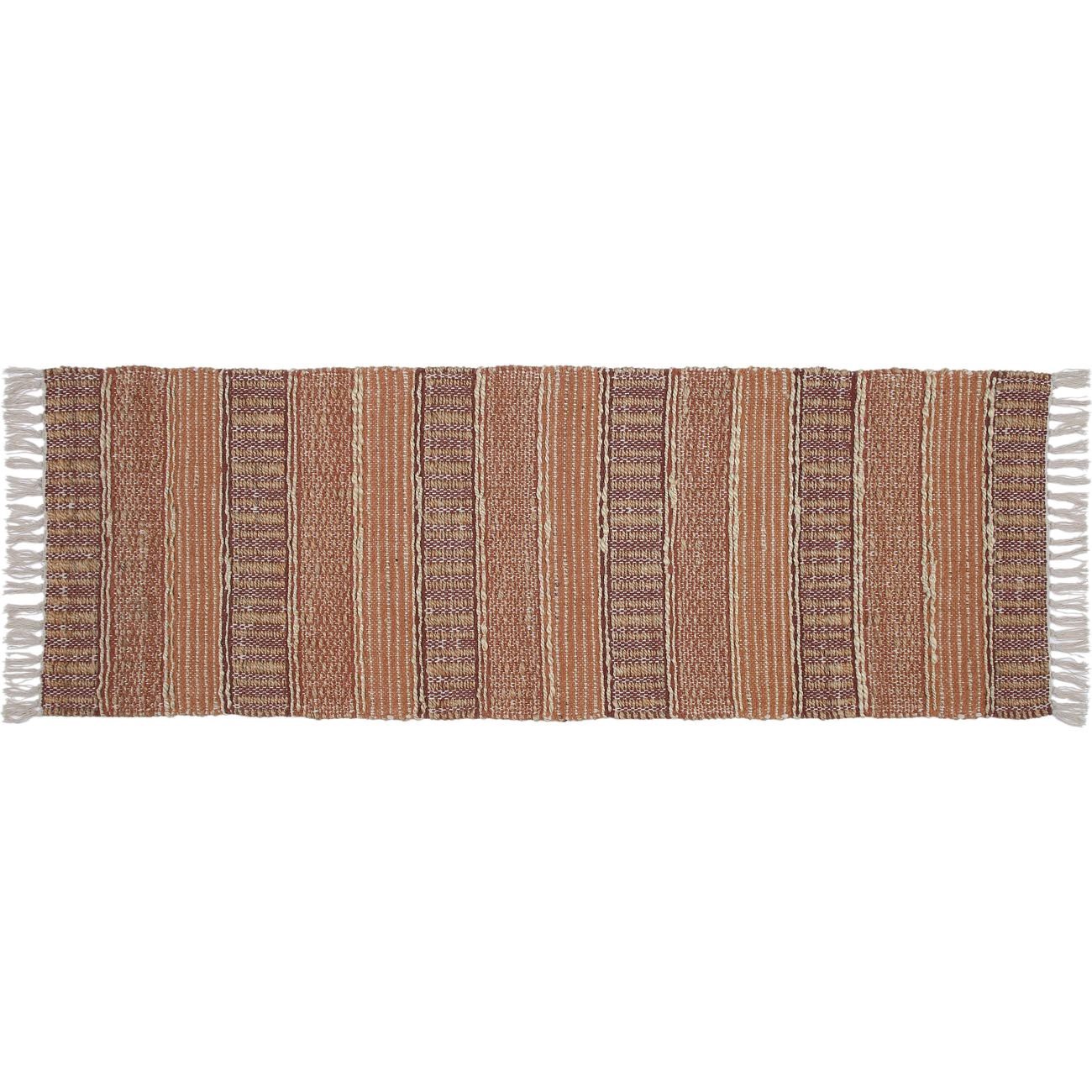 Enhance your living space with this Haven + Key Chennel Fringe Runner Rug in Pecan. Measuring 24" x 72", this rug is crafted from a blend of 53% cotton and 47% jute, offering a soft yet sturdy texture…