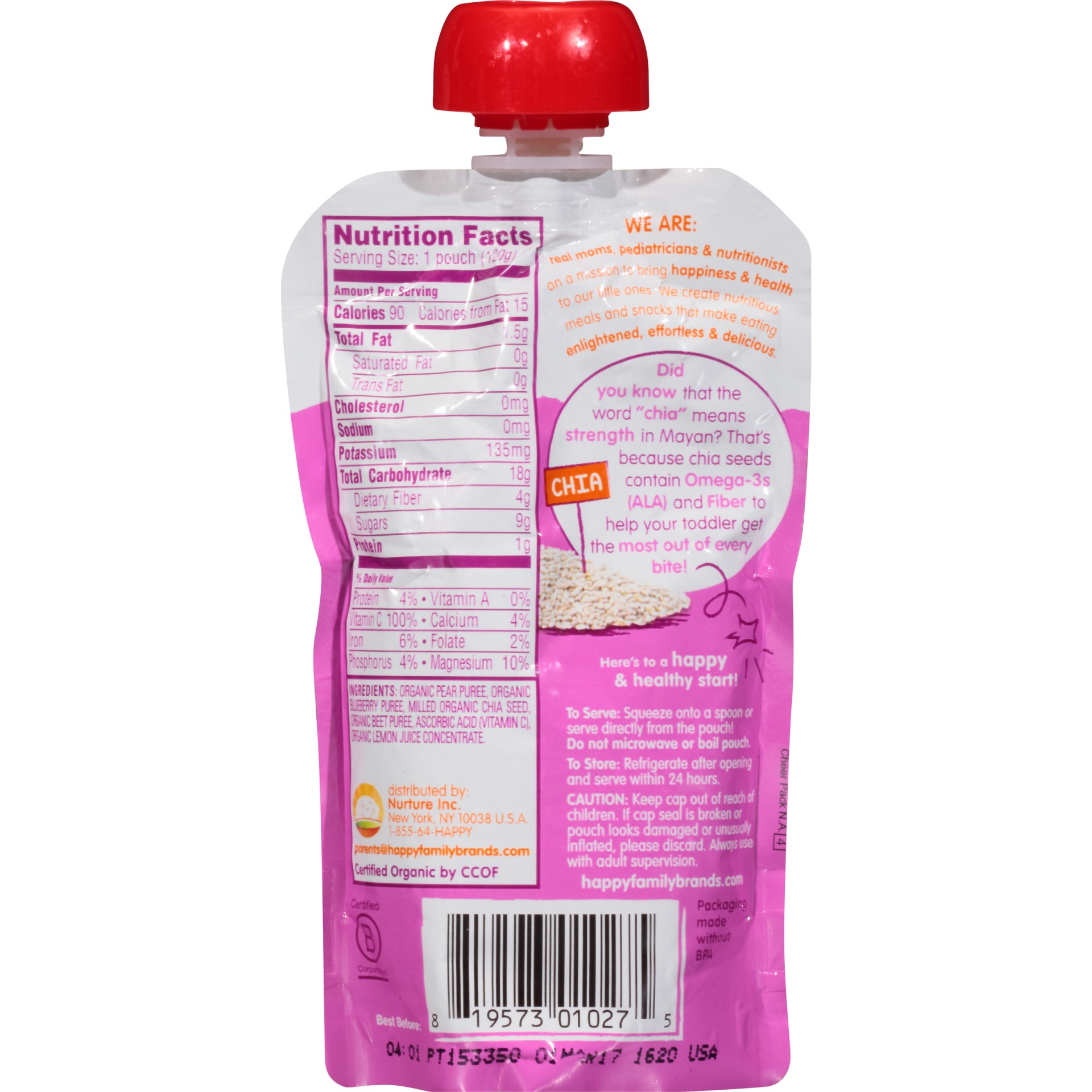 Happy Tot Organics Superfoods Stage 4 Organic Pears, Beets, Blueberries + Super Chia Pouch 4.22 oz UNIT