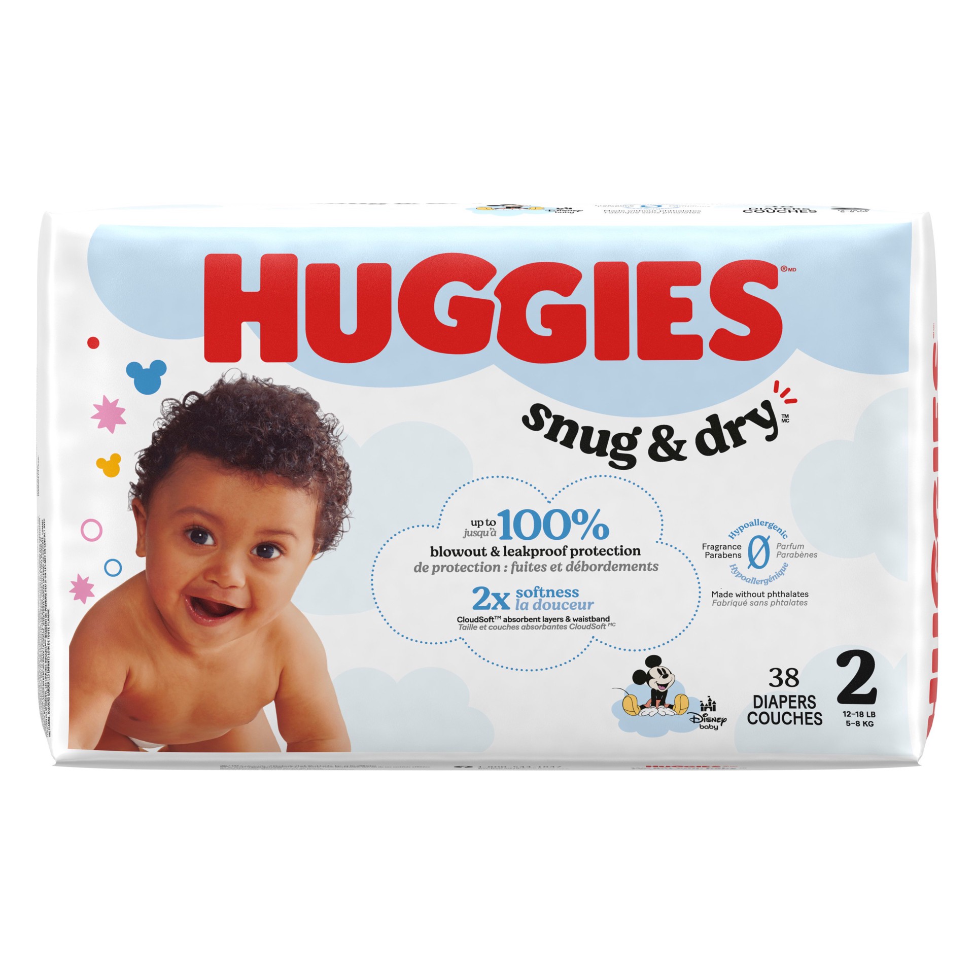 Huggies Snug & Dry Baby Diapers, Size 2 (12-18 lbs), 38 Ct