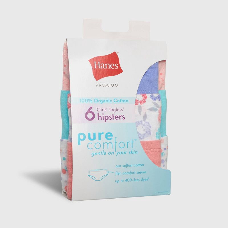 The Hanes Pure Comfort Girls' Hipster Underwear are made from 100% organic cotton. They are soft and comfortable and made responsibly. They include 40% less chemicals and dyes and feature flat comfort…