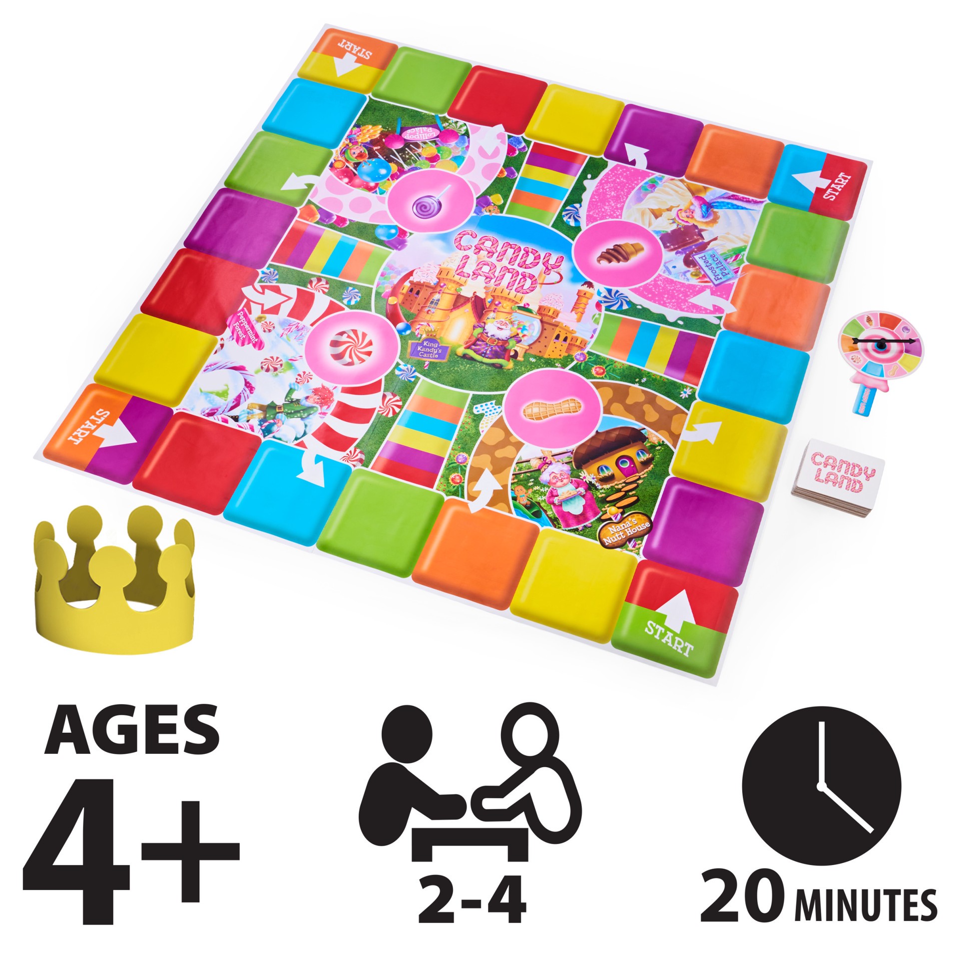 Welcome to a life-sized land of rainbow roads and sweet surprises: CANDY LAND™ Giant Edition! Unfold the large, 64” x 64” vinyl gameboard and open up your kids’ imaginations with illustrations of a co…