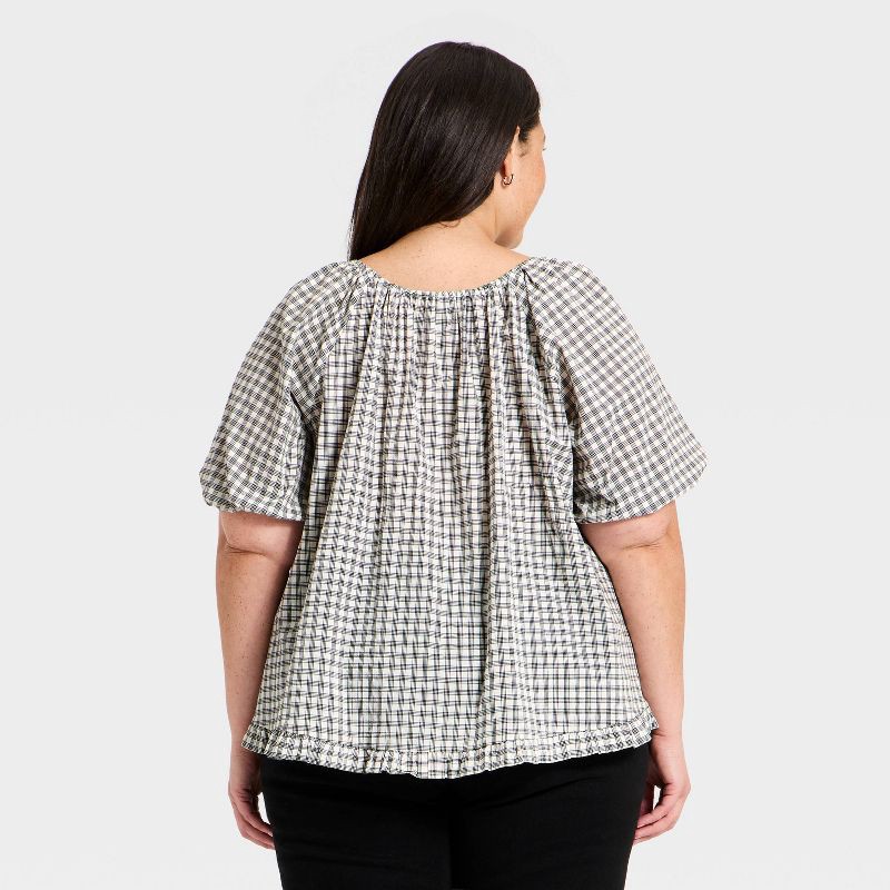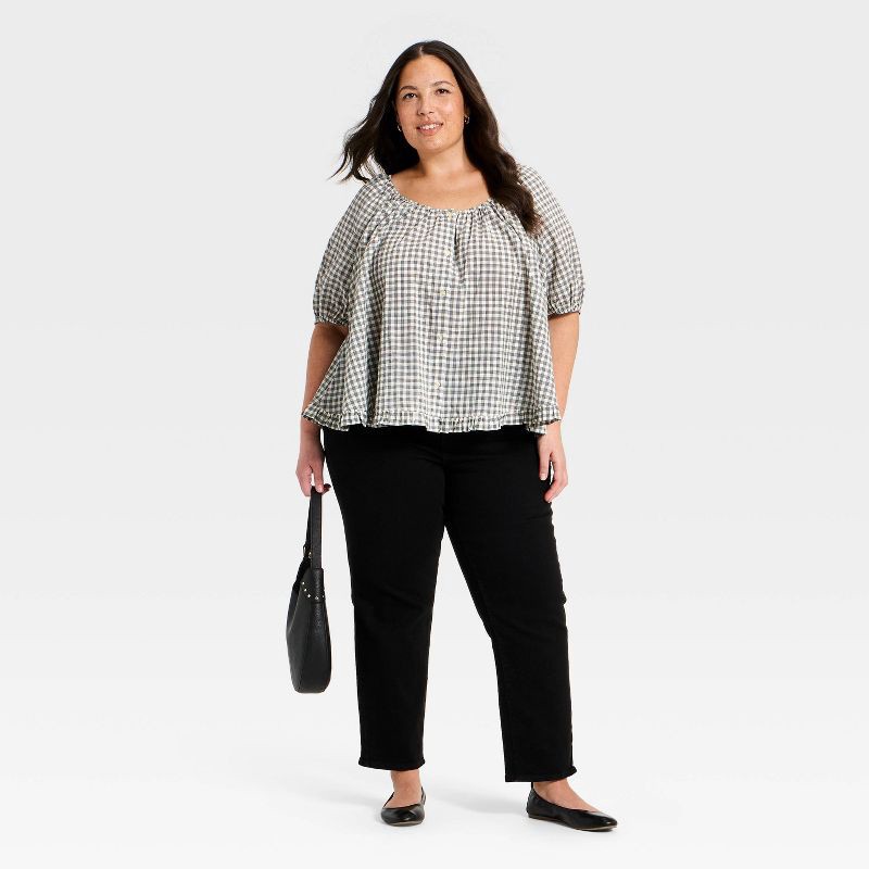 Women's Puff Short Sleeve Button-Up Peasant Top - Universal Thread™ Gray Plaid XXL