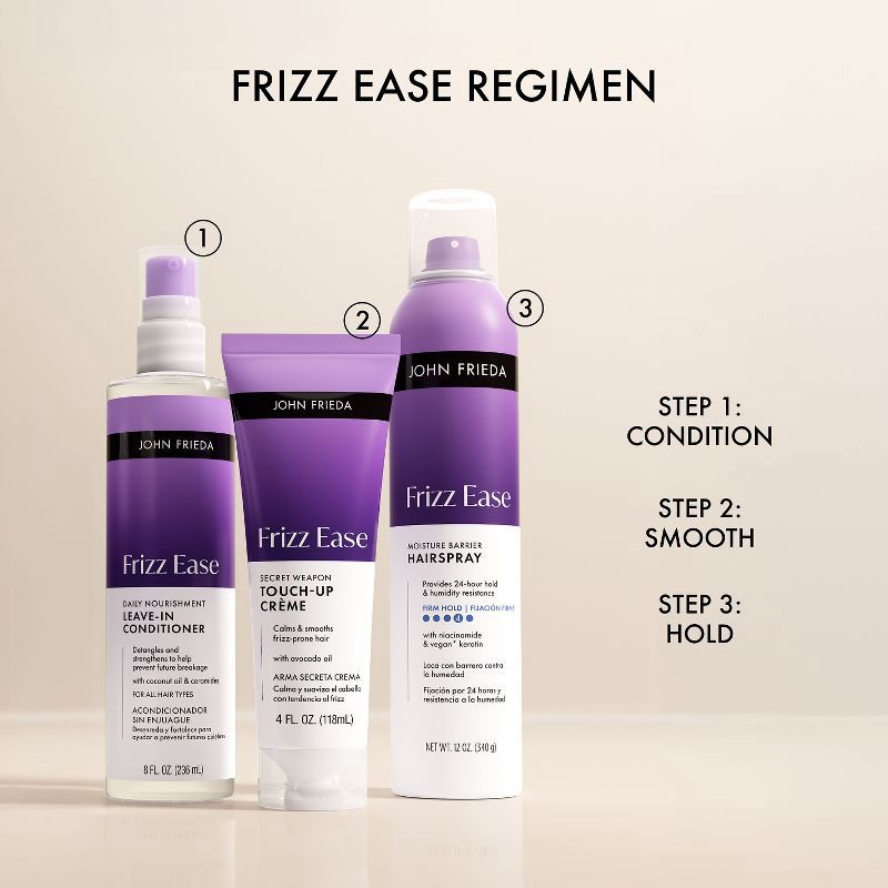 - COMPLETE FRIZZ CONTROL ROUTINE: Combine with John Frieda Frizz Ease Leave-In Conditioner and Moisture Barrier Hairspray for optimal frizz-fighting results