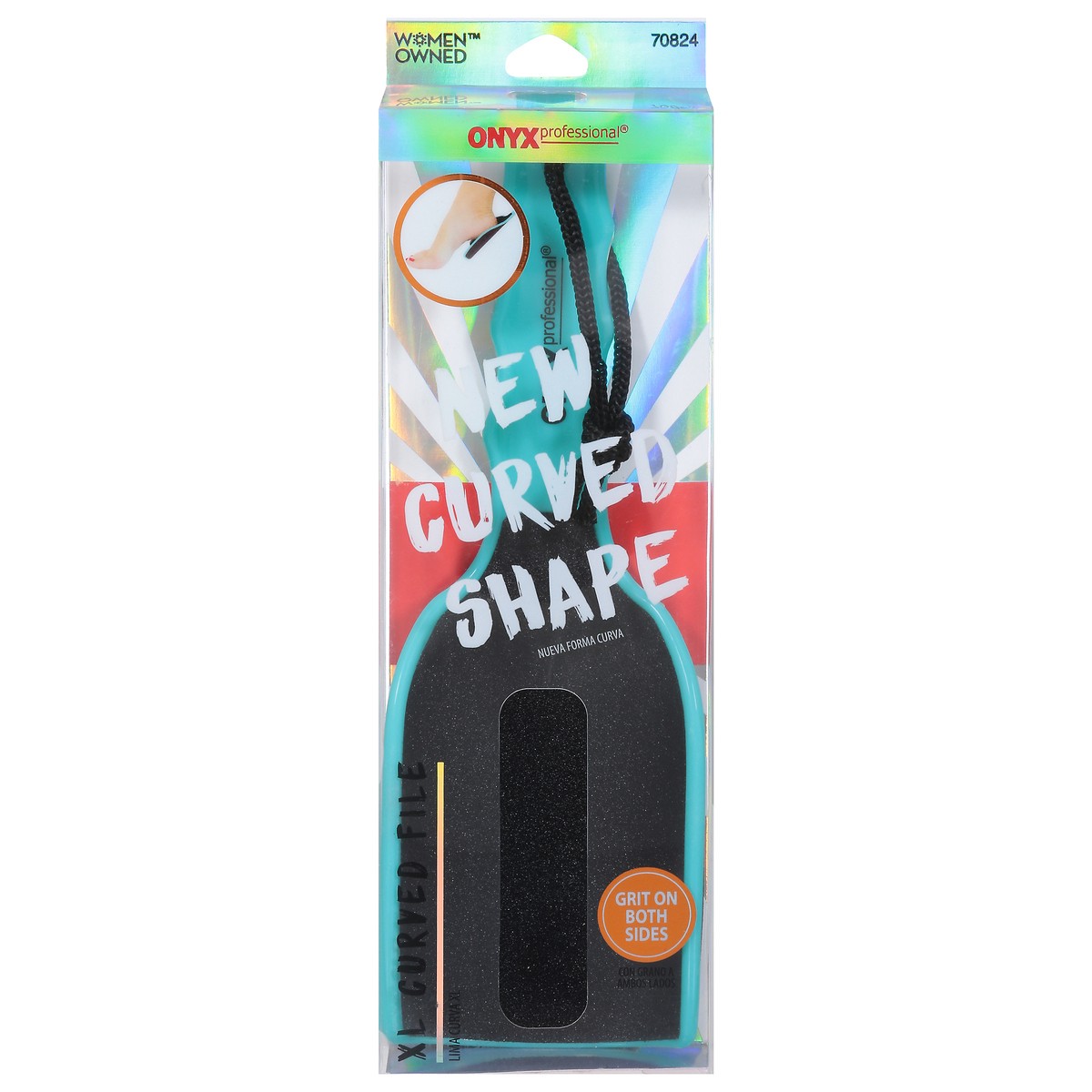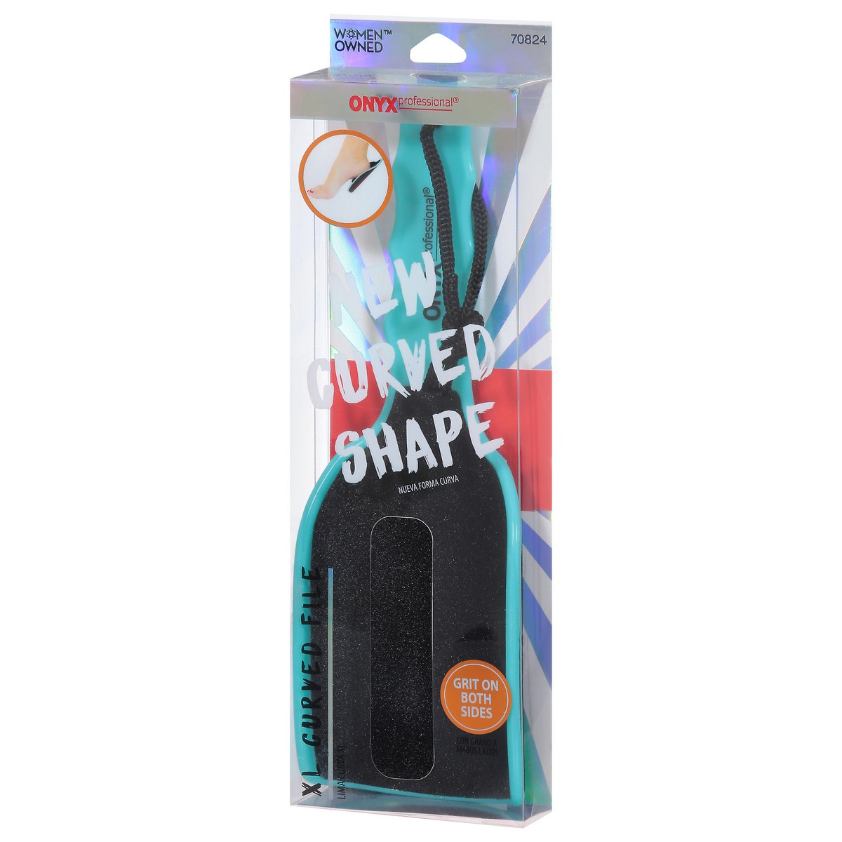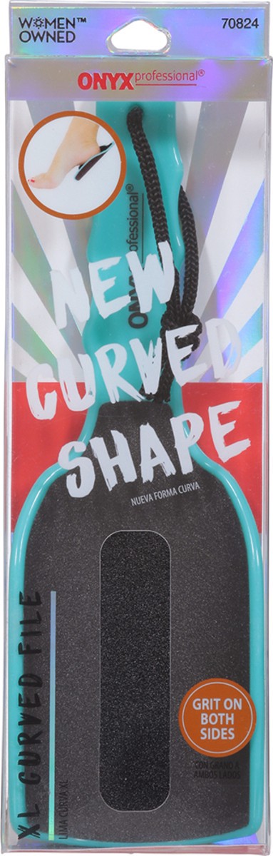 New curved shape. Grit on both sides. XL Curved File: Engage your full foot potential with Onyx Professional's XL Curved File. Easy, secure handled grip stays comfy in your hand while form fitting to …