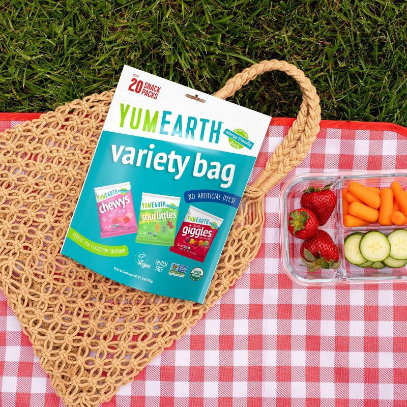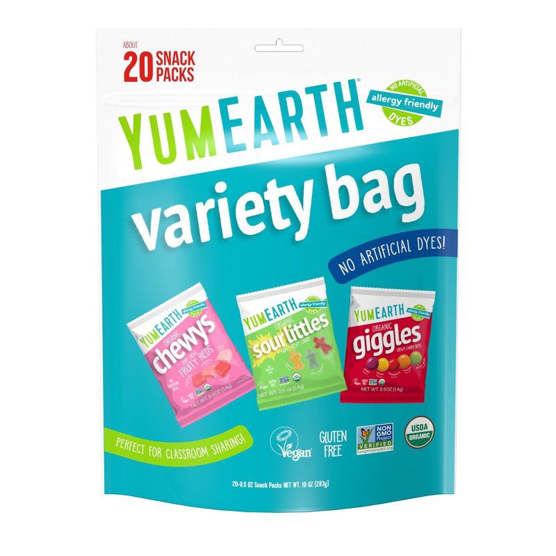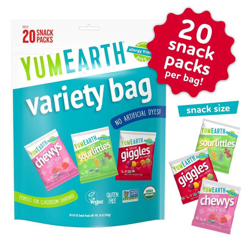 YumEarth Everyday Variety Bag - Item Number 1674Snack time just got an upgrade! Our NEW Variety Box is filled with 30 snack packs featuring a mix of Giggles, Chewys Fruity Reds, and Sour Littles—all b…