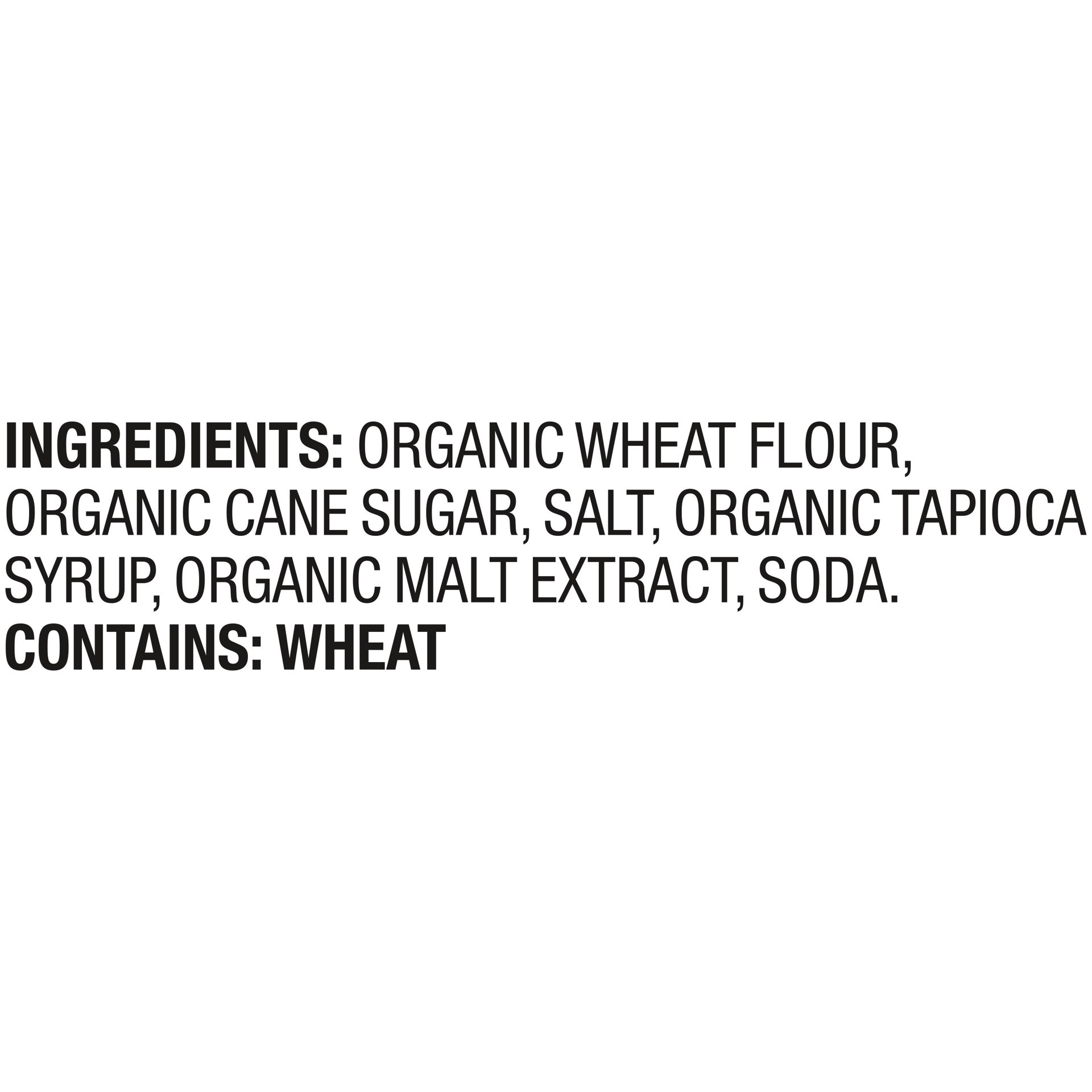 INGREDIENTS: ORGANIC WHEAT FLOUR, ORGANIC CANE SUGAR, SALT, ORGANIC TAPIOCA SYRUP, ORGANIC MALT EXTRACT, SODA. CONTAINS: WHEAT