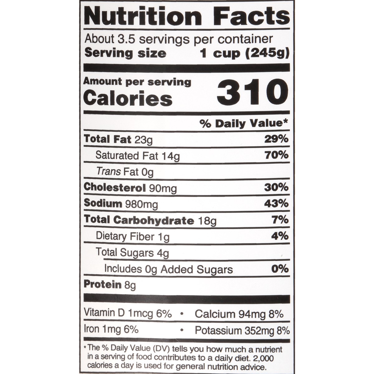Cream, Clam Stock (Water, Clam Base [Cooked Clams (Clams, Water, Corn Starch), Salt, Clam Broth, Sugar, Potato Flour, Natural Flavor, Onion Powder, Codfish Powder]), Potatoes, Clam Meat, Onions, Conta…