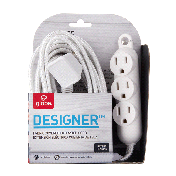Globe Electric's original Designer Series Fabric Extension Cord with three grounded outlets is the perfect replacement for traditional extension cords. Designed with style in mind, the white fabric co…