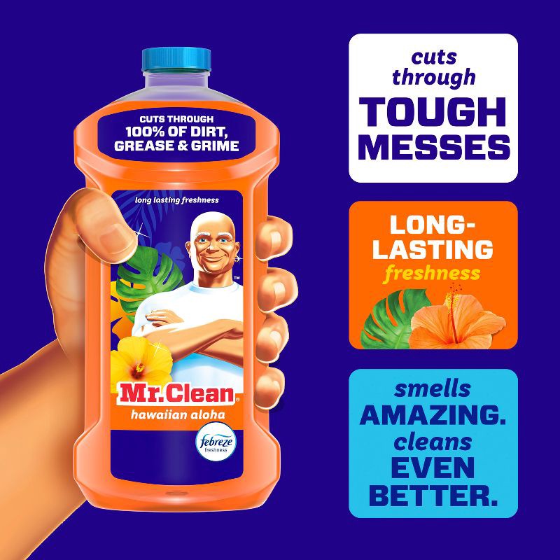 Mr. Clean's All Purpose Cleaner muscles through 100% of dirt and grease for powerful, multi surface cleaning. This floor cleaner for mopping is great for cleaning linoleum, tile & hardwood floors*. Us…