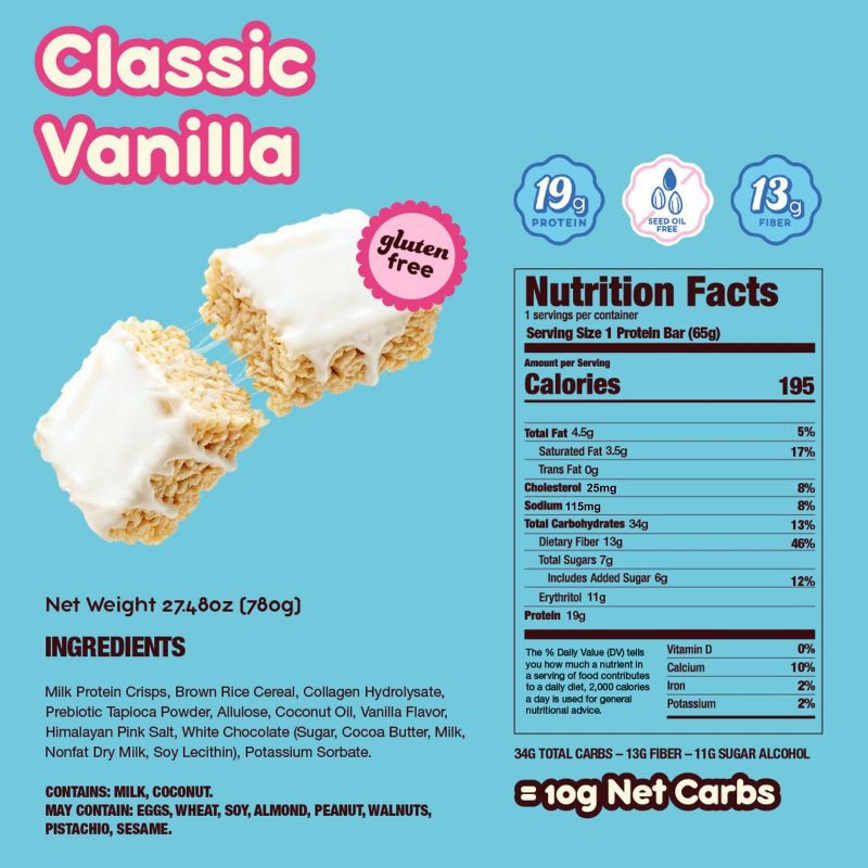- 19G PROTEIN + 13G FIBER: Each treat delivers 19g of protein, 13g of fiber, and 5g of collagen; helps keep you full and satisfied