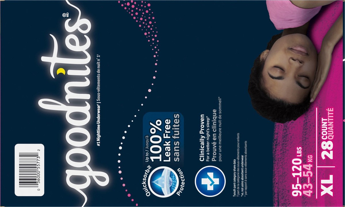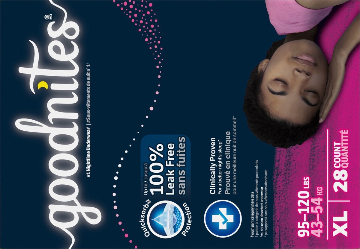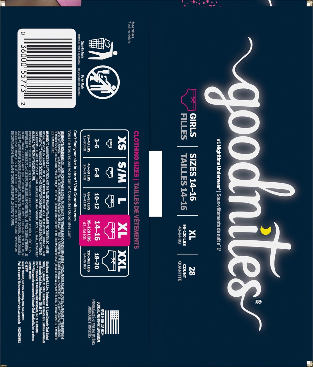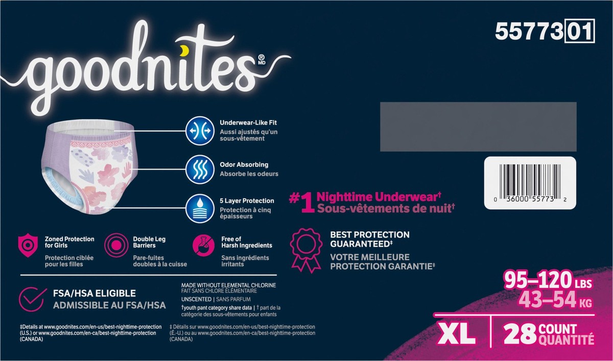 Goodnites Girls' Nighttime Bedwetting Underwear, Size Extra Large (95-140+ lbs), 28 Ct