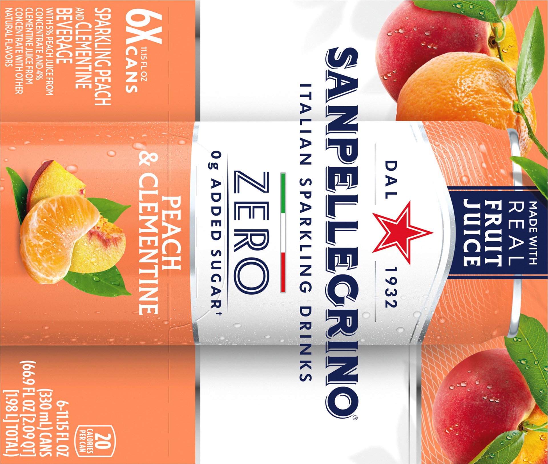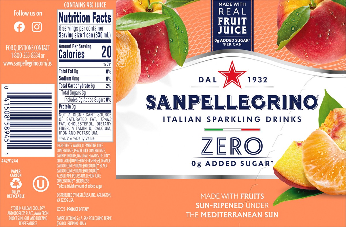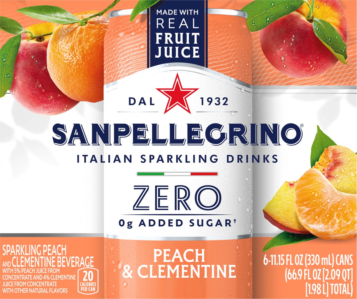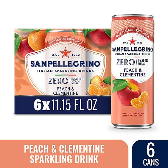 Sanpellegrino Italian Sparkling Drink Zero Sugar Peach And Clementine - 6 - 11.15 Fl. Oz.