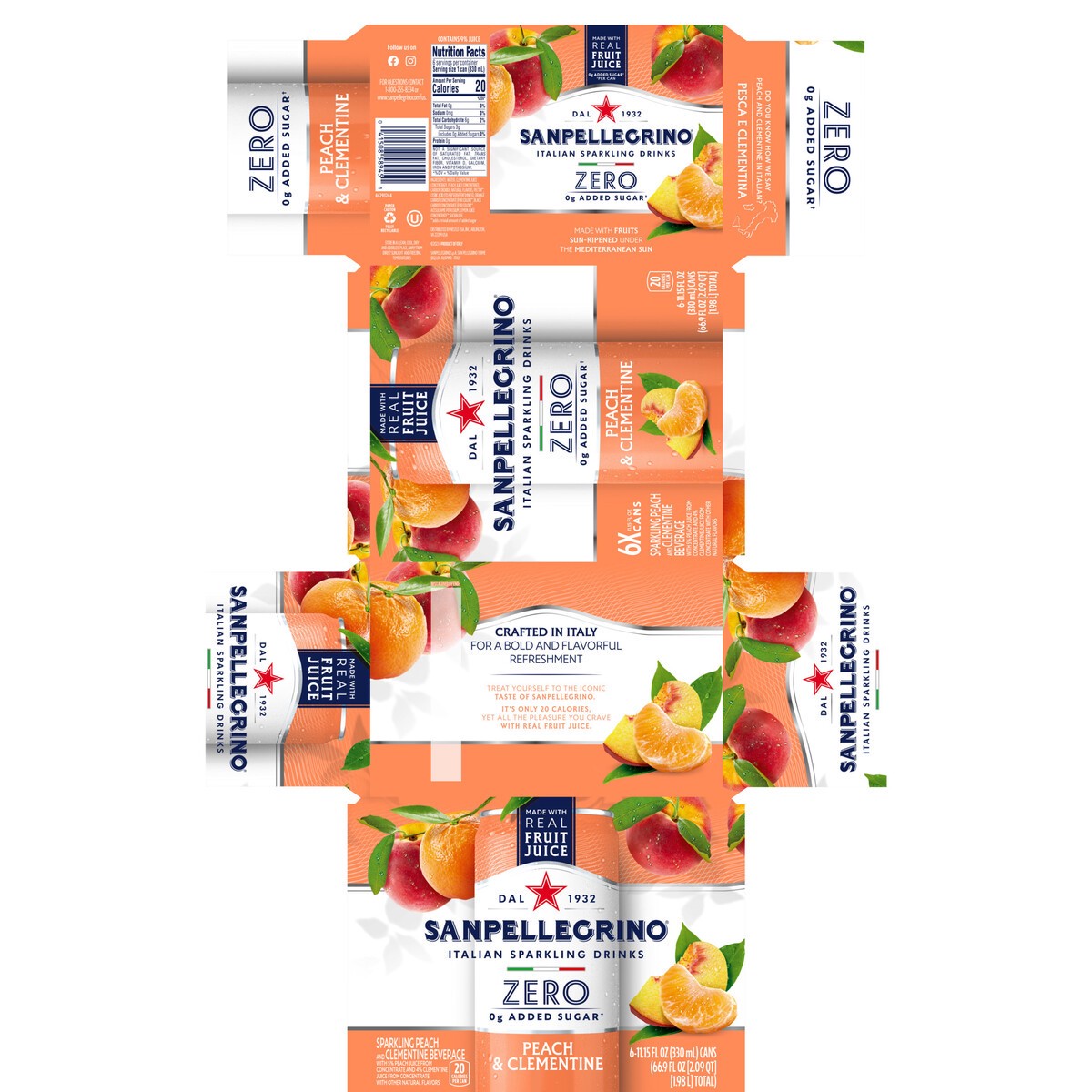 Enjoy every sparkling moment with Sanpellegrino Peach and Clementine Zero Grams Added Sugar Sparkling Drink. It's only 20 calories, yet all the pleasure you crave with real fruit juice. Enjoy Sanpelle…