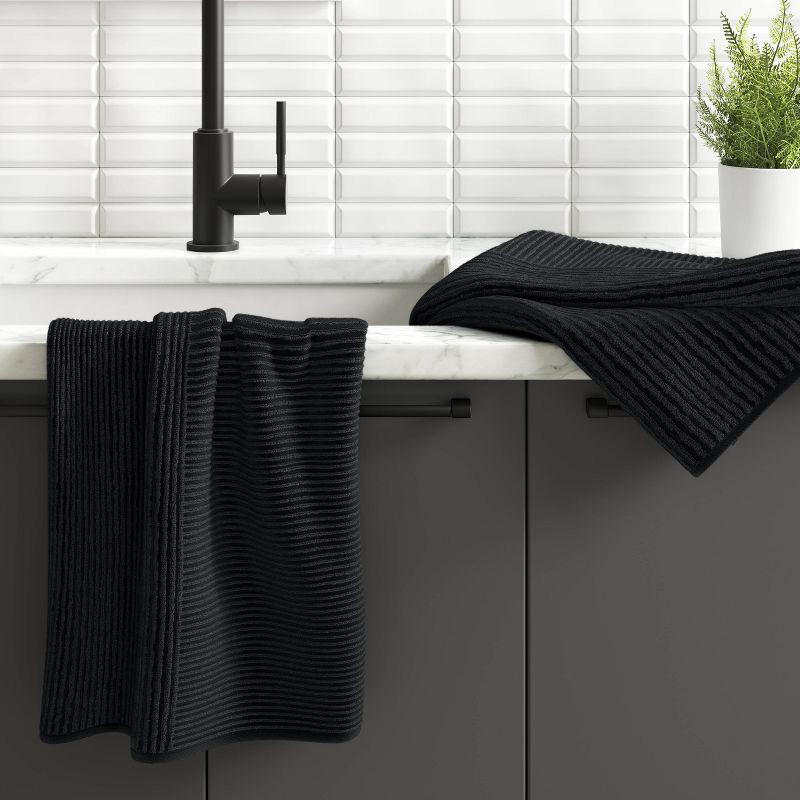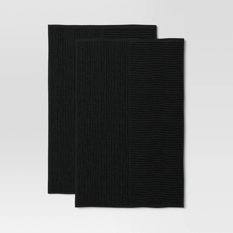 2pk Cotton Solid Ribbed Terry Kitchen Towel Black - Threshold™