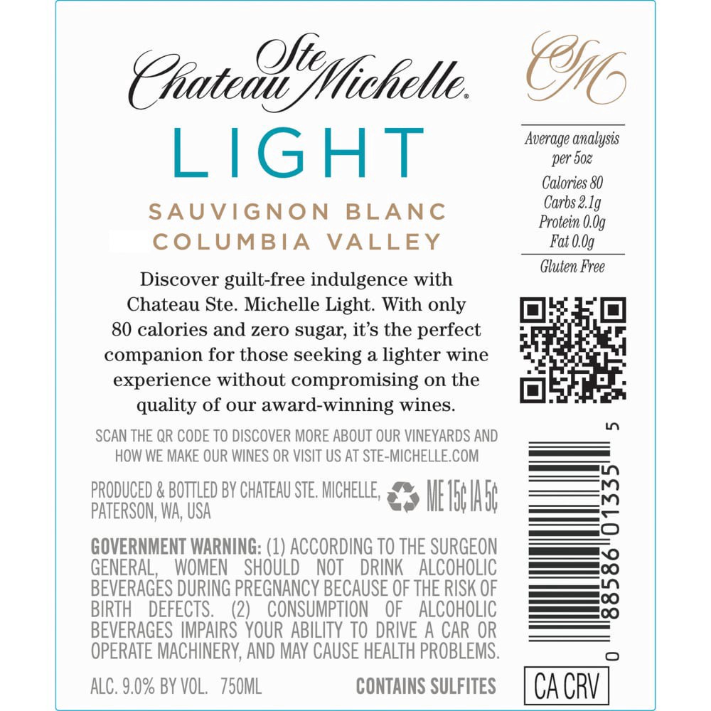 - One 750 mL bottle of Chateau Ste. Michelle Light Sauvignon Blanc White Wine