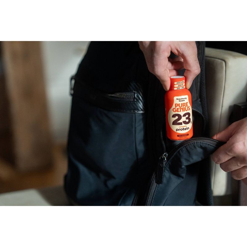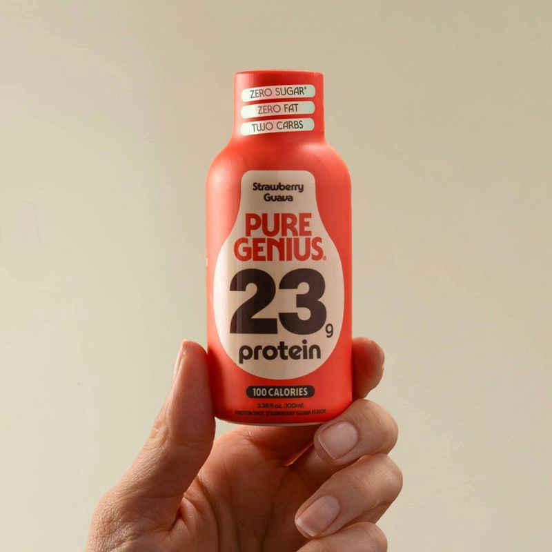 Pure Genius Protein is unlike any other protein you've ever had. It's a protein shot containing 23 grams of high quality protein with all essential amino acids in a TSA-friendly 3.38 fl oz bottle desi…