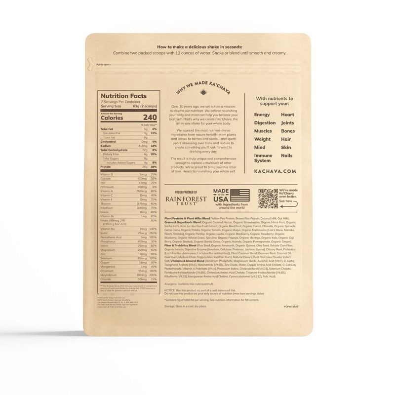 - 25 grams of plant protein, 6 grams of fiber, 26 vitamins and minerals
