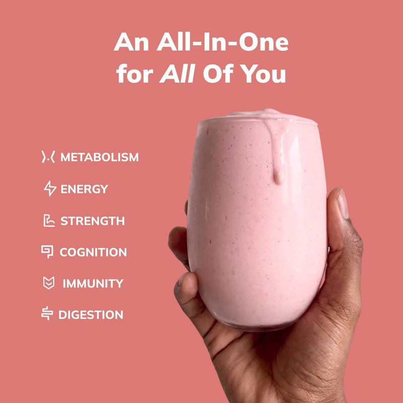 - Superfruits, greens blend, omegas, MCTs, probiotics, and more