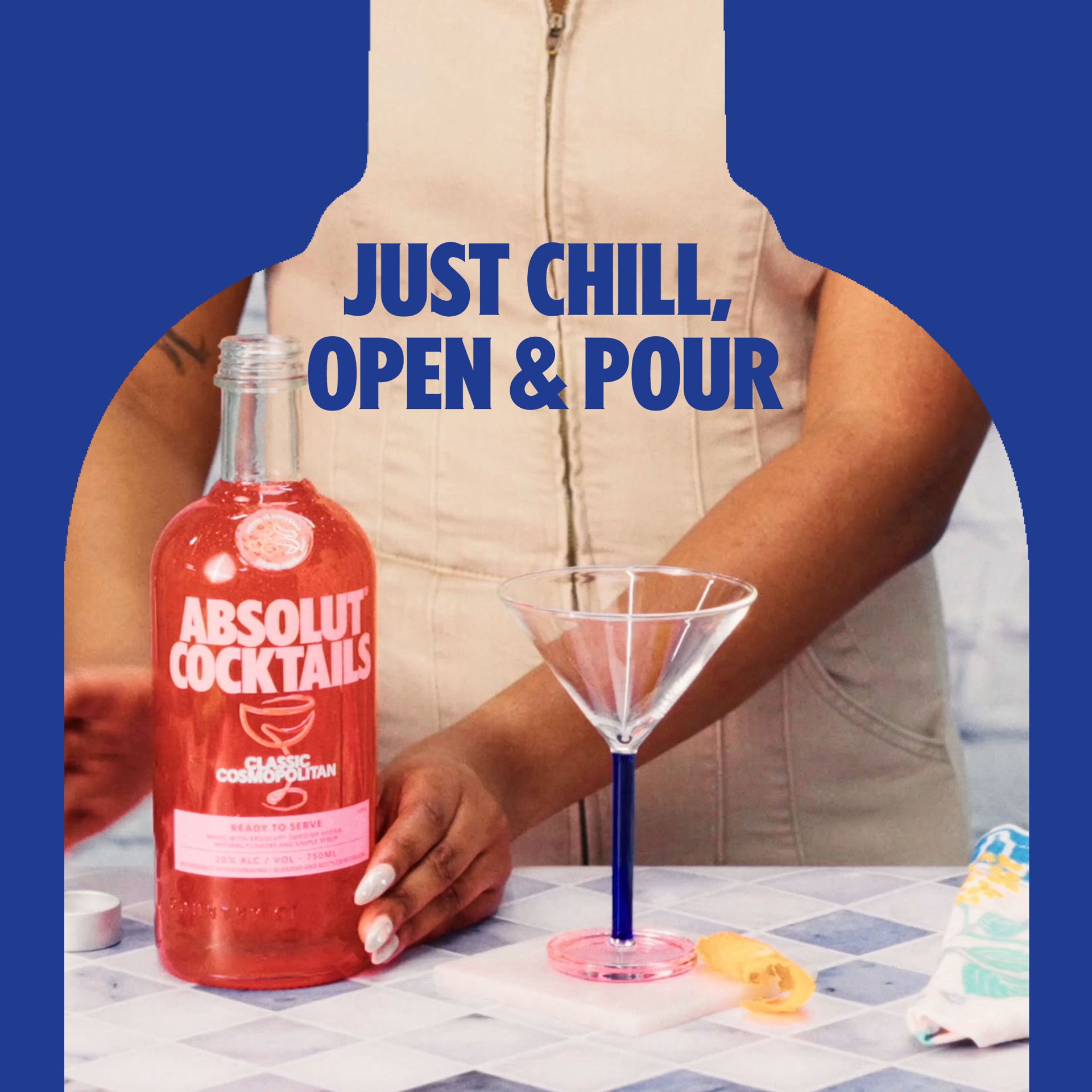 - CONSUMPTION TIP: Simply chill a bottle of Absolut Classic Cosmo in the fridge or pour it over ice and serve for a perfectly prepared cocktail