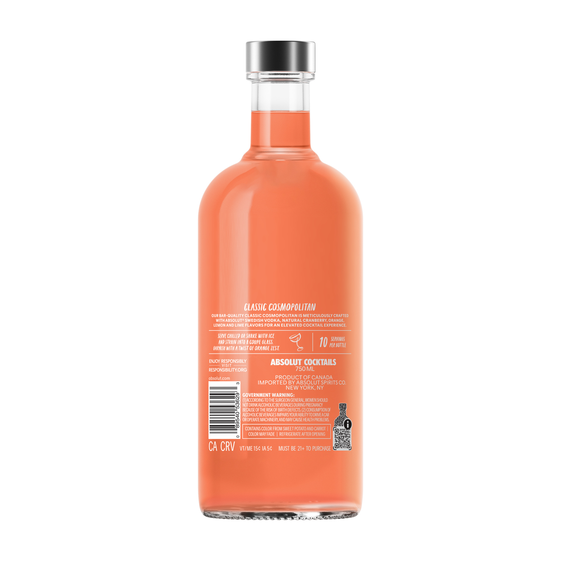 - ENJOY RESPONSIBLY: Each 750ml bottle of Absolut Classic Cosmopolitan is 40 proof, 20% ABV, and contains 10 servings