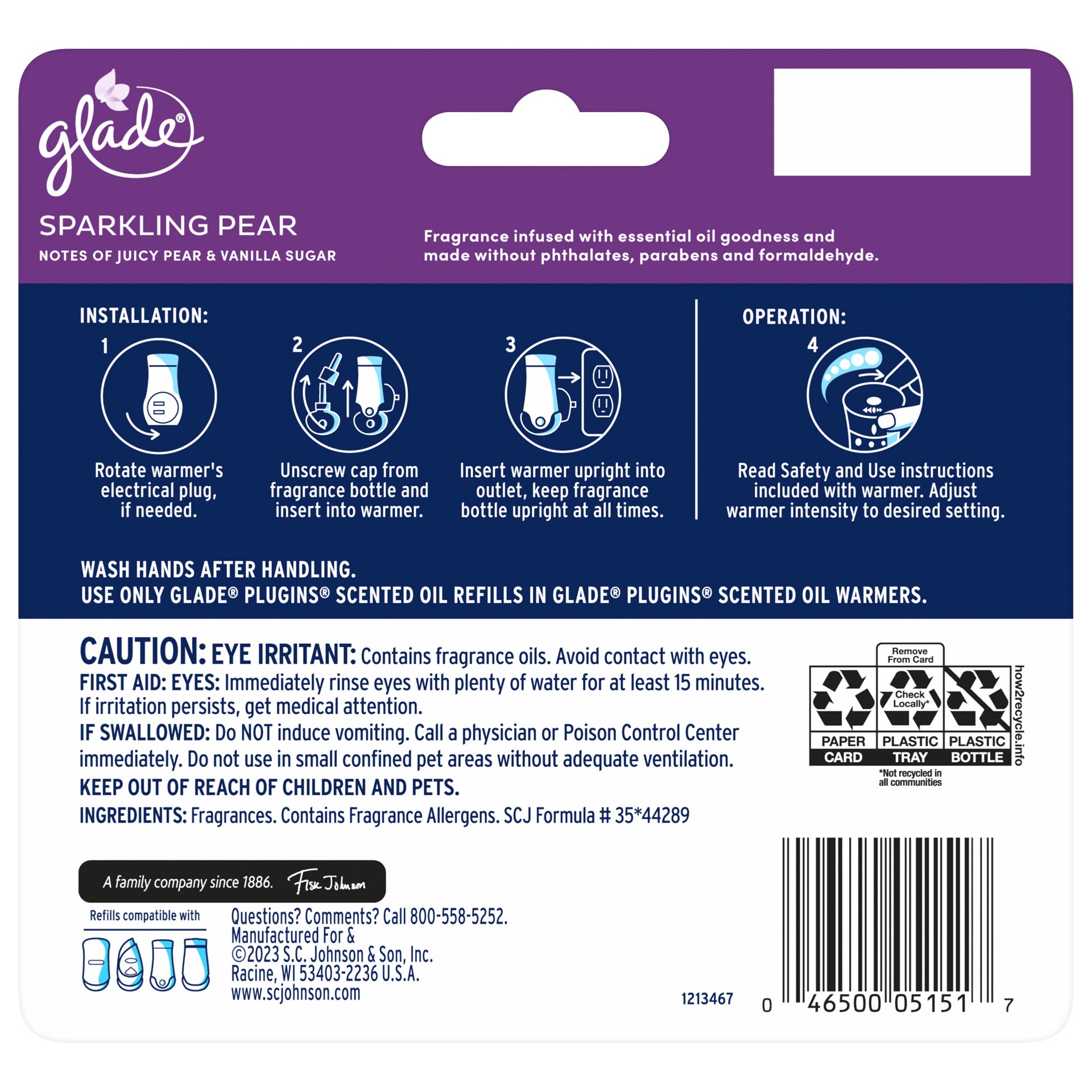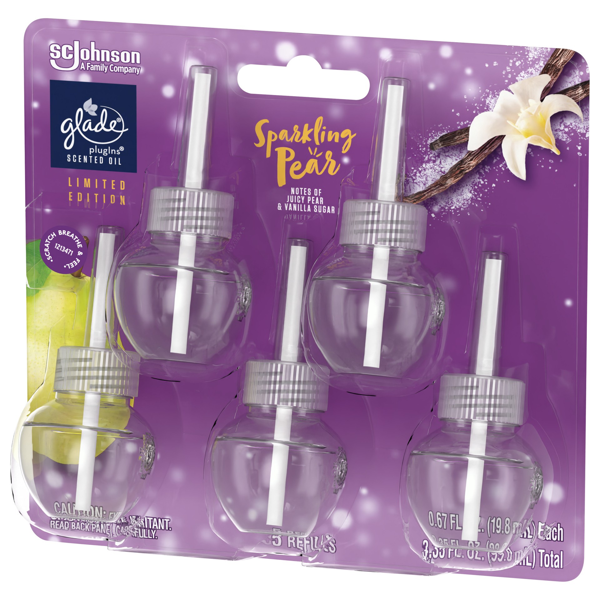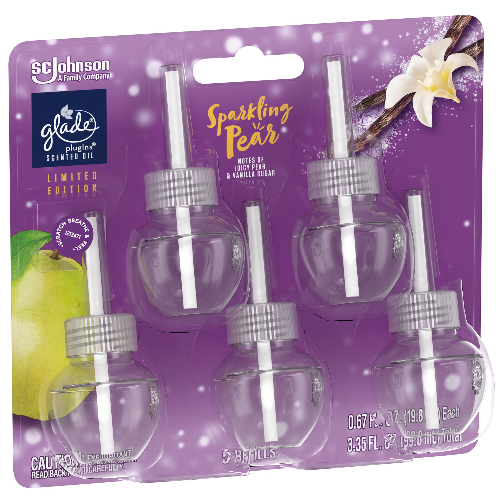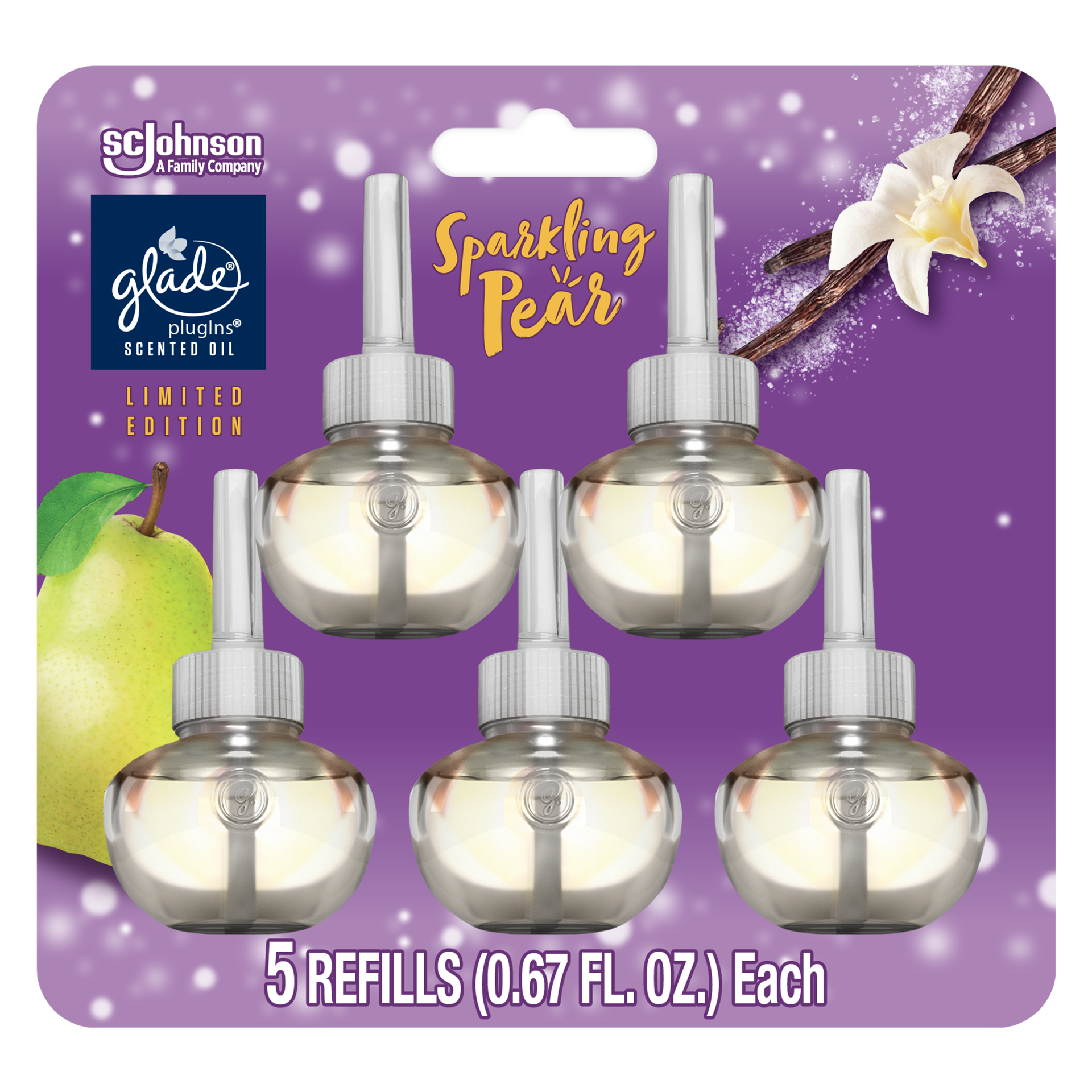 Turn up the season with Glade Sparkling Pear plugIns scented oil refill for home use. This limited edition scented oil fragrance is a great way to bring luxurious comfort to any moment with festive fr…